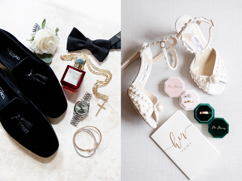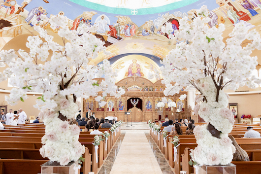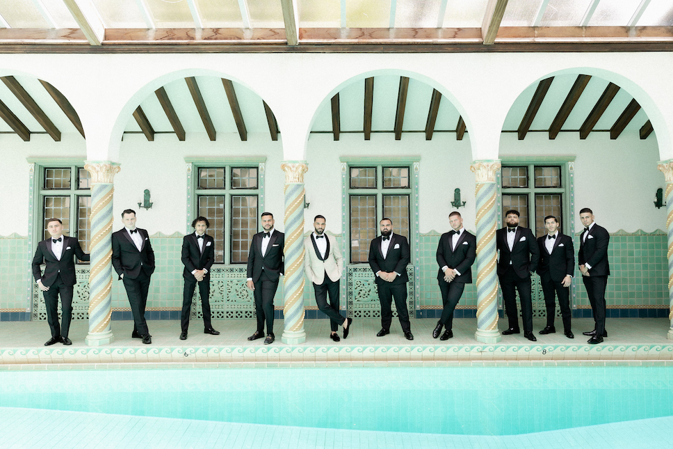 On July 31, 2022, the couple got married at Ss. Nicholas, Constantine & Helen Greek Orthodox Church in Roseland. Their reception was at Pleasantdale Château, which was Matt’s top pick and the first venue the couple visited. “It took our breath away!” says Gabby. “We looked at a few more, but we just kept comparing every venue to the Pleasantdale.” For entrées, guests chose from branzino filet, braised short rib, herb-roasted chicken breast and vegetable primavera risotto options. In addition to the wedding cake, there were passed assorted desserts.