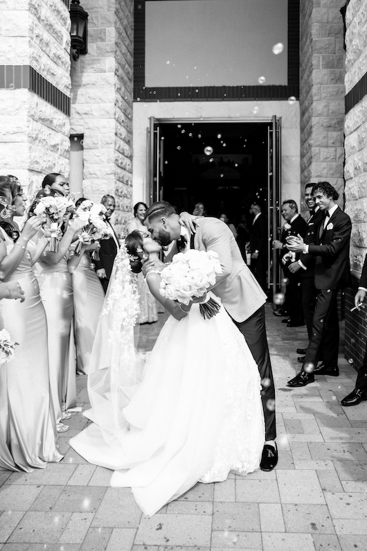 For their first dance, the couple chose “Electricity” by James Veck-Gilodi, which then turned into the more energetic “Electricity” by Dua Lipa. “It completely surprised our friends and guests,” says Gabby. “We told each other when the upbeat version came on we would sing it the way we do in the car and the moment felt effortless.”