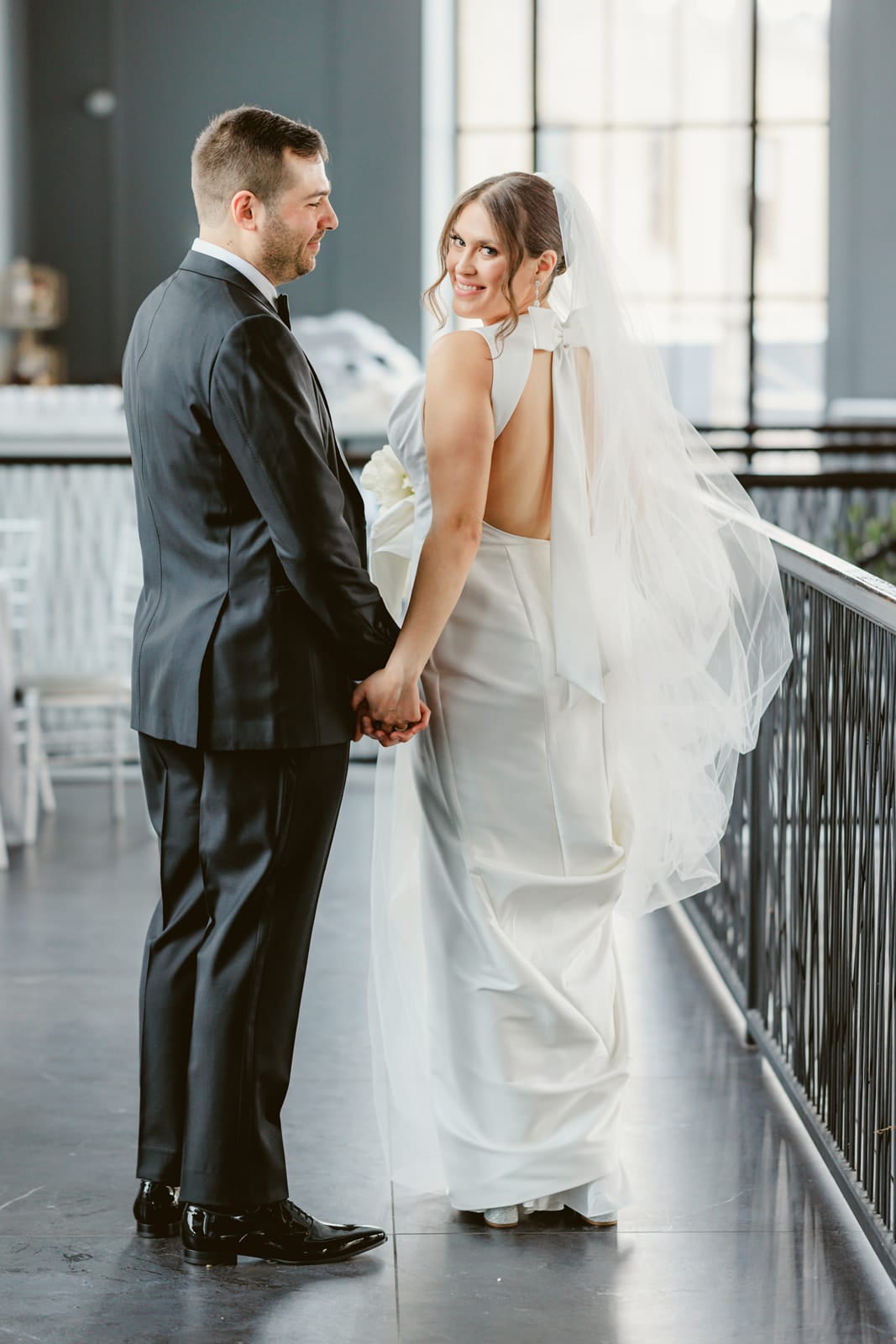 “That being said, I wanted a venue that was industrial and unique, particularly because all of our friends are going to 100 weddings per year. The venue made the rest of our decisions easy—we didn’t need over-the-top florals or table decor.”