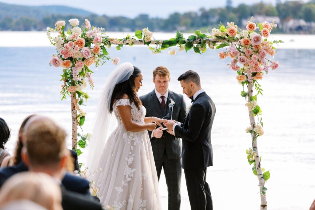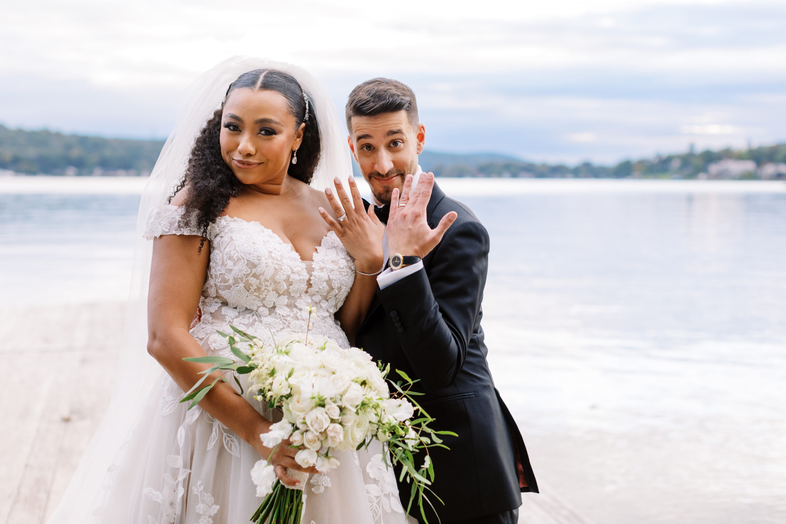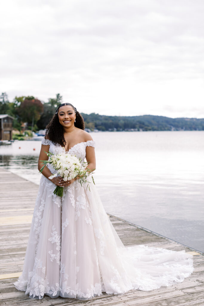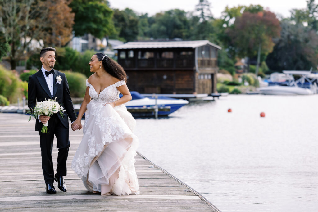 Shanice grew up going to summer camp on a Connecticut lake, and the couple wanted a venue that recalled those happy camp vibes. They found it at Lake Mohawk Country Club in Sparta, with its elegant yet rustic ballroom and perfect beach for a lakeside ceremony.