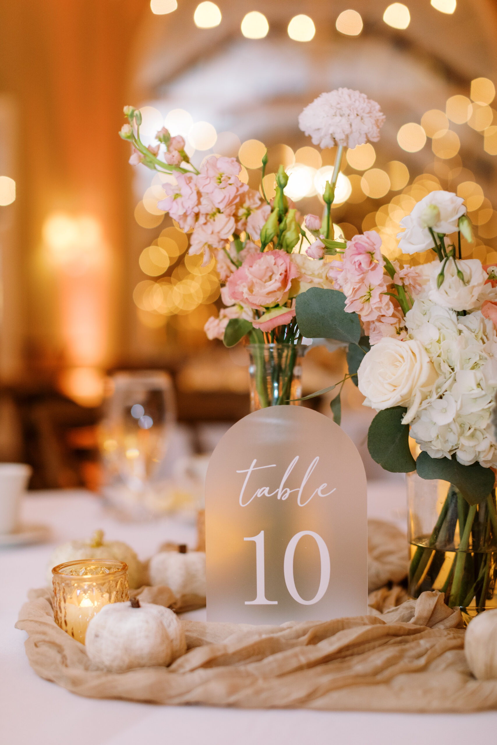Their September 30, 2023 wedding date inspired an autumn theme: Shanice’s mom gathered leaves and pumpkins from home stores to adorn the tables. The florist chose a palette of muted purples and creamy pinks for the bridesmaids’ and venue blooms. After hours of rain—and stress—the weather cleared for the couple to meet by the lake for their first look. Both were nervous, but “the first look made all that go away,” Jason says. Like their first dance song—“Stand by Me” by Ben E. King—suggests, the bride and groom stuck by each other for the rest of the day. “We wanted to experience the whole wedding together,” says Shanice.