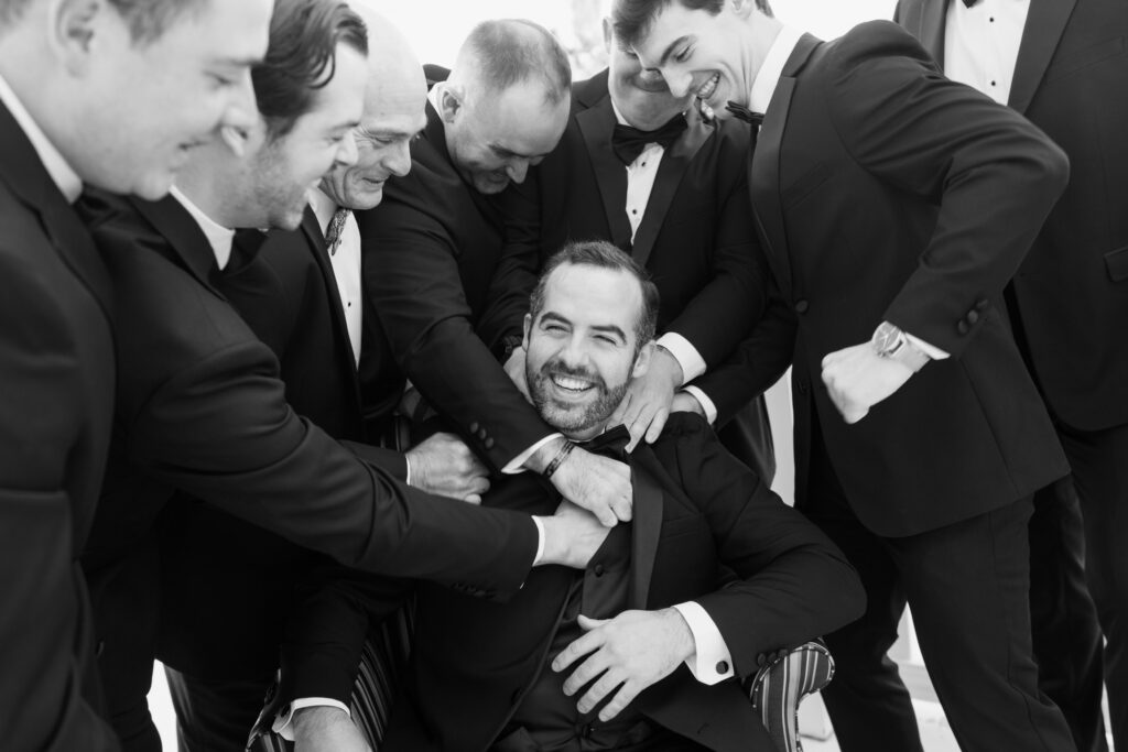 “My bridal party wore a beautiful Eucalyptus color for the bridesmaid dresses that was also used in the floral arrangements and general wedding color palette,” says Isabel. “The men were more simple in their black tuxedos but looked dapper nonetheless!”
