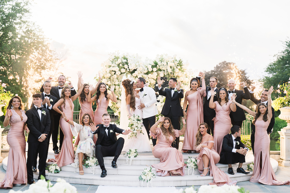 VENUE Park Château Estate & Gardens PHOTOGRAPHER Jenna Russo (@silentcapturephoto) VIDEOGRAPHER Kenneth Cooper Films LIVE BAND & IMMERSIVE ENTERTAINMENT Jordan Kahn Music Company RECEPTION DJ Geo Events DRUMMER Tito Puente Jr. SAXOPHONIST Art Crichlow CEREMONY DJ LJDJs VIOLINIST Candice Anderson FLORIST Wedded Events BRIDE’S HAIR Lucia Casazza BRIDE’S MAKEUP Priscilla DiStasio EVENT DESIGN & PRODUCTION Preston Bailey EVENT PLANNER Jessica Rogers COORDINATOR Sarabeth Quattlebaum CEREMONY DRESS Mark Zunino from Bridal Reflections RECEPTION DRESS Galia Lahav from Bridal Reflections VEIL Mark Zunino HEADPIECE Bridal Styles Boutique BRIDAL ROBE Lé Lauriér Bridal by Lauren Holovka BRIDE’S SHOES Badgley Mischka BRIDESMAID DRESSES Coco Chateau GROOM’S ATTIRE Sal Lauretta PHOTO BOOTH Tap Snap ICE SCULPTURE Okamoto Studio CIGAR ROLLER The Cigar Host INVITATIONS RoseBox NYC, Custom Cobra CAKE Palermo’s Bakery OFFICIANT Veronica Ruelas FOOD TRUCKS Columbia Inn, Curbside Confections NITROGEN DRINKS & DESSERT Frost 321 LED WRISTBANDS CrowdSync UNITY CANDLE Bonnie’s Creations FLIP-FLOPS Reception Flip Flops REHEARSAL DINNER The Highlawn BRUNCH Château Grande Events by David Burke