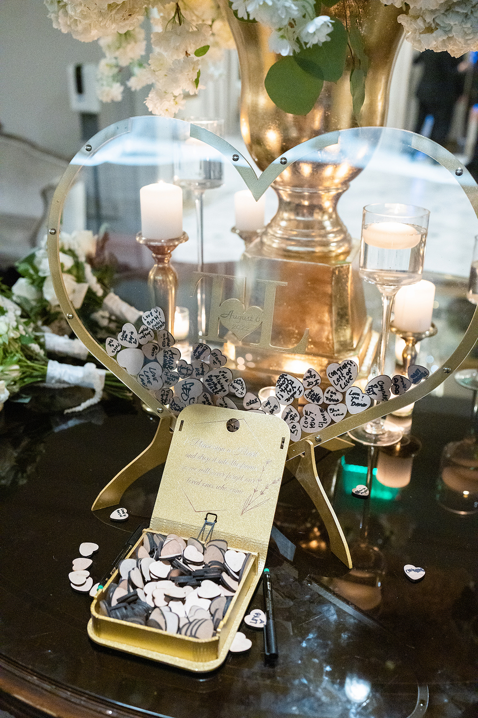 “My parents were always together, and I feel like that’s Louie and I because we’re always together,” Teresa says. An ice sculpture with the same phrase was on display at the cocktail hour.