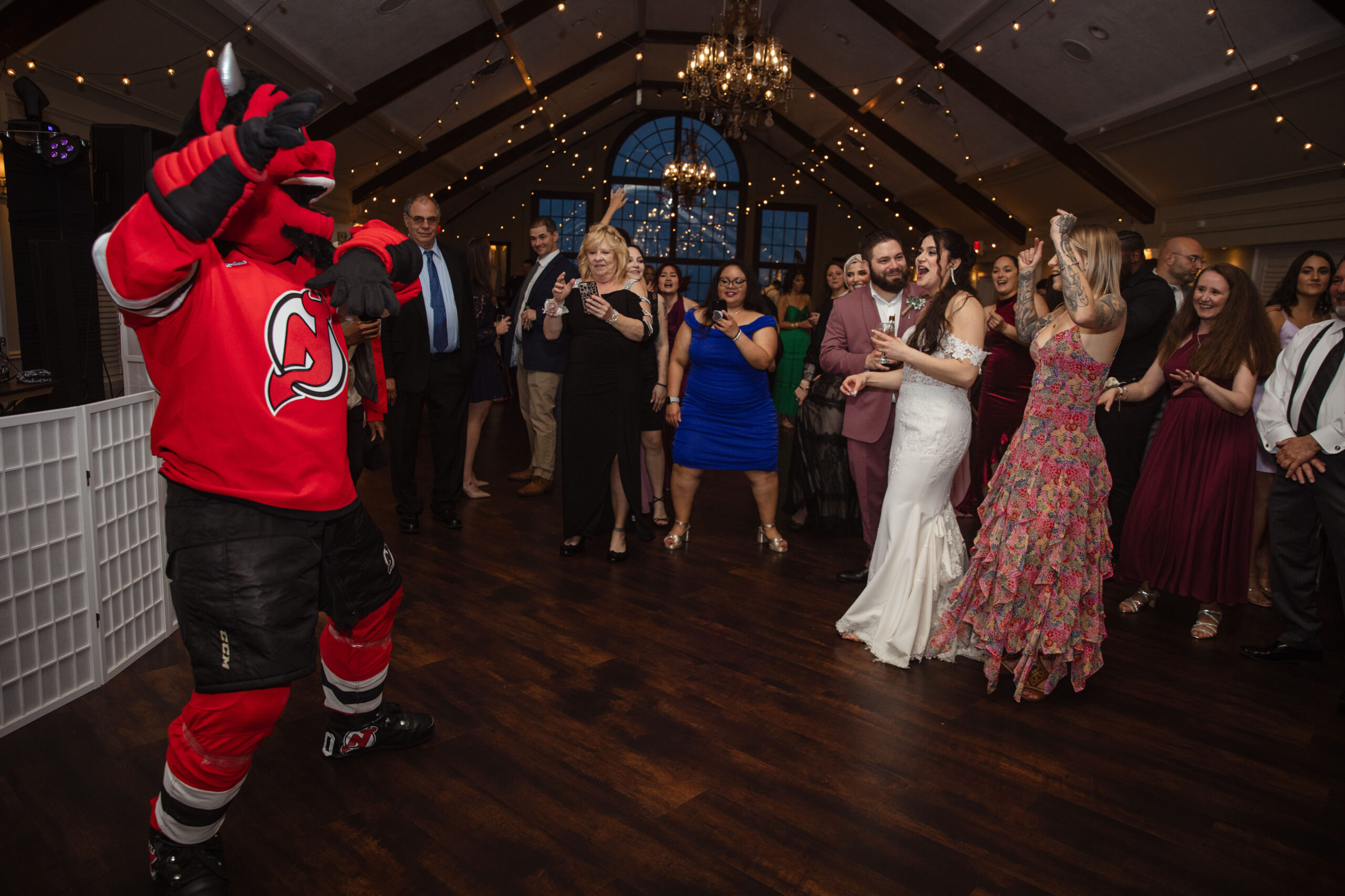 Plus, the couple invited the New Jersey Devils’ mascot to make an appearance at their reception, which really got their guests excited.