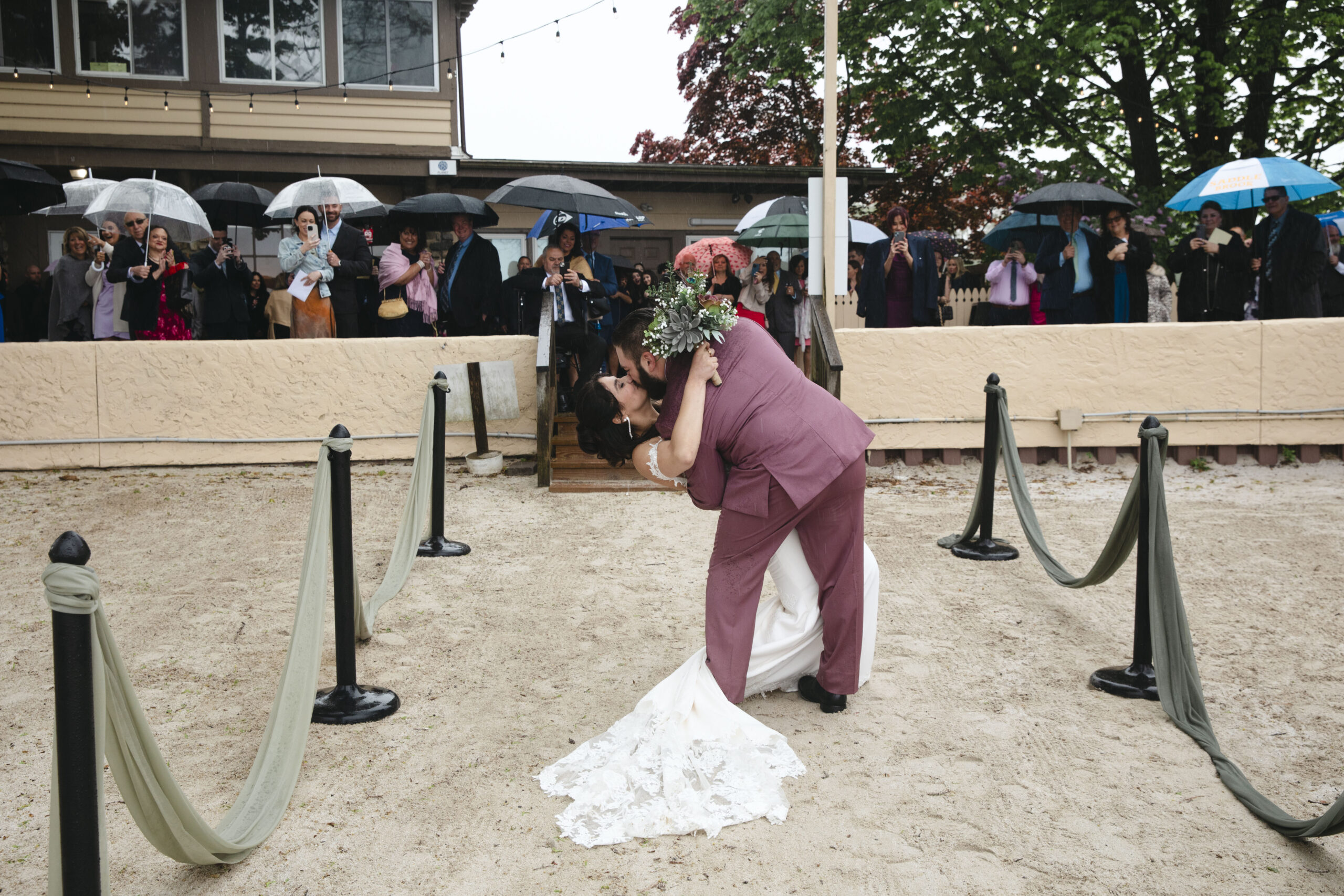 The rain was one detail Jacalyn couldn’t live without. “Our ceremony was on the beach and I very much felt that rain or shine it had to be on the beach,” says Jacalyn. “It rained—an unplanned detail that made everything that much more perfect. The ceremony was us with our bridal party and parents on the beach and everyone else was on the boardwalk with umbrellas. It felt very intimate and more comfortable and made it seem even more special.”