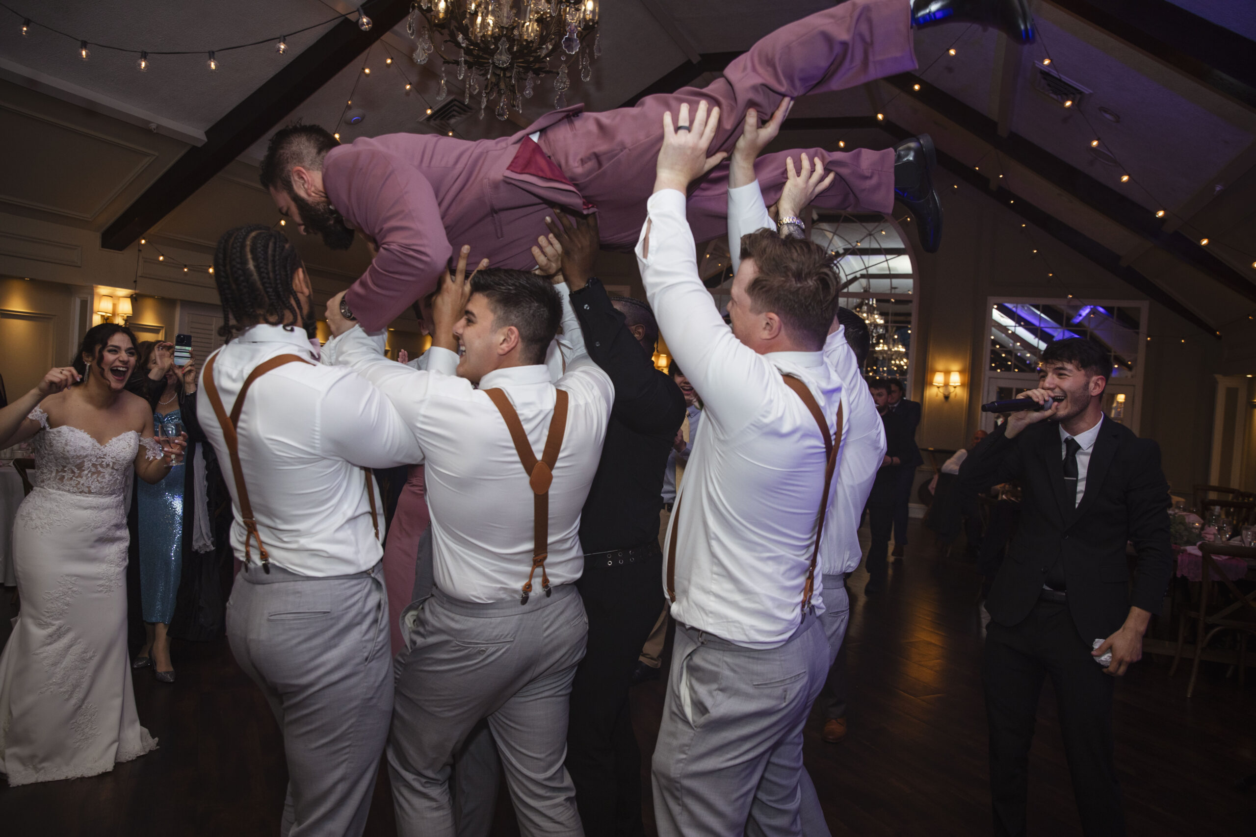 “We wanted either beachy or rustic,” says Jacalyn. “We looked at a few different venues and then when we walked into the reception room of Lake Mohawk Country Club, my stomach dropped and I was set. Then seeing the beach and the boardwalk, it was all perfect. Everything we wanted in one place.”