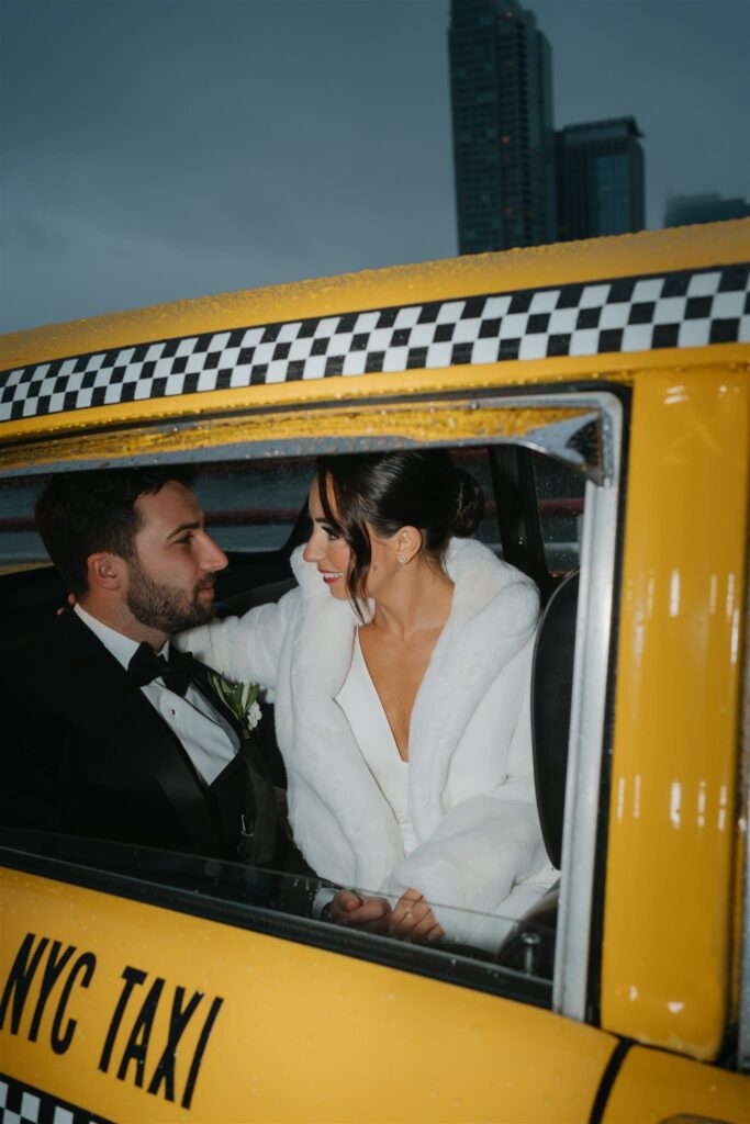 The couple rented a vintage NYC cab that picked them up from the church and drove to Battello. “It just added so much detail into our photos,” says Lauren.