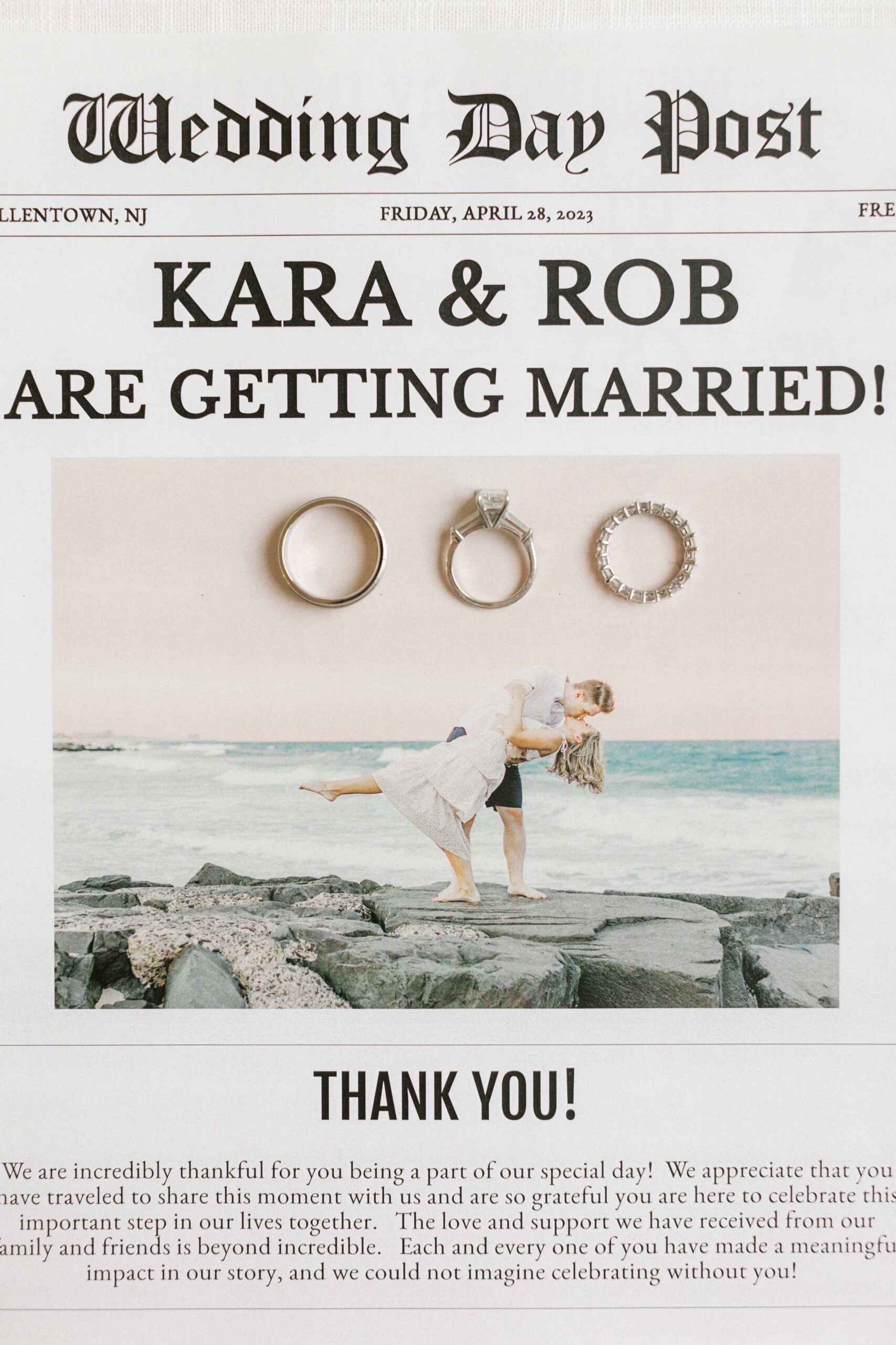 “Rob and I met in May 2020, just as the world was opening back up following the Covid-19pandemic, on the app Hinge,” says Kara. “Our first date was six feet apart on two separate beach blankets alongside the Hudson River in Hoboken. We got to know each other over a bottle of wine, but I wouldn’t let our glasses touch for our ‘Cheers!’ as the pandemic was still so new.”