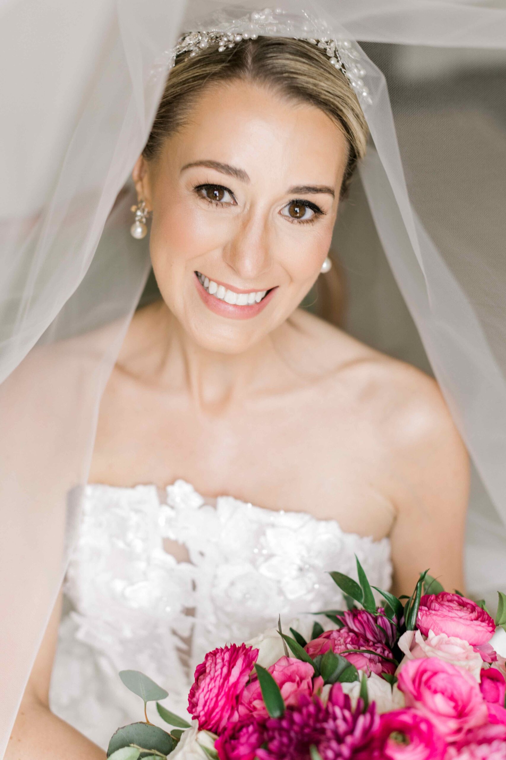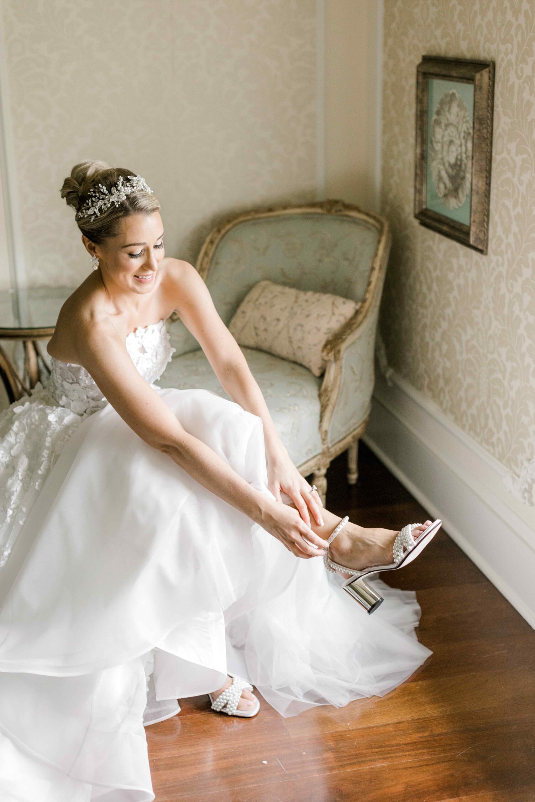 “My veil was cathedral length with the same beautiful floral details, also from Rivini by Rita Vinieris. My shoes were custom made Lanvin Paris heels, with an all over pearl detail. My getting ready robe was custom made from my mother’s wedding dress, by a local seamstress.”