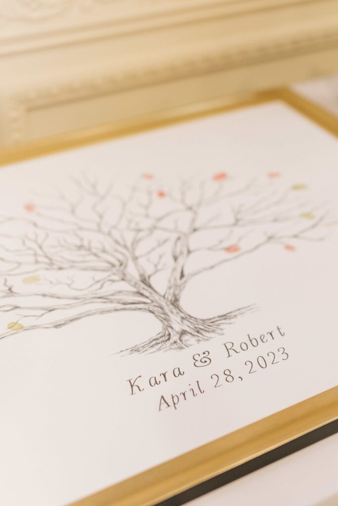 “I had two incredible details I loved a lot,” says Kara. “First was my cloche seating chart. I had this idea early in my planning process, and it was incredible seeing them come to life. I partnered with The Jess Press and MDS Florals to execute this idea and they both did such an amazing job. Second would be the jam instruments. This was a really fun add, and I was so happy to see all guests playing with them all night long!”
