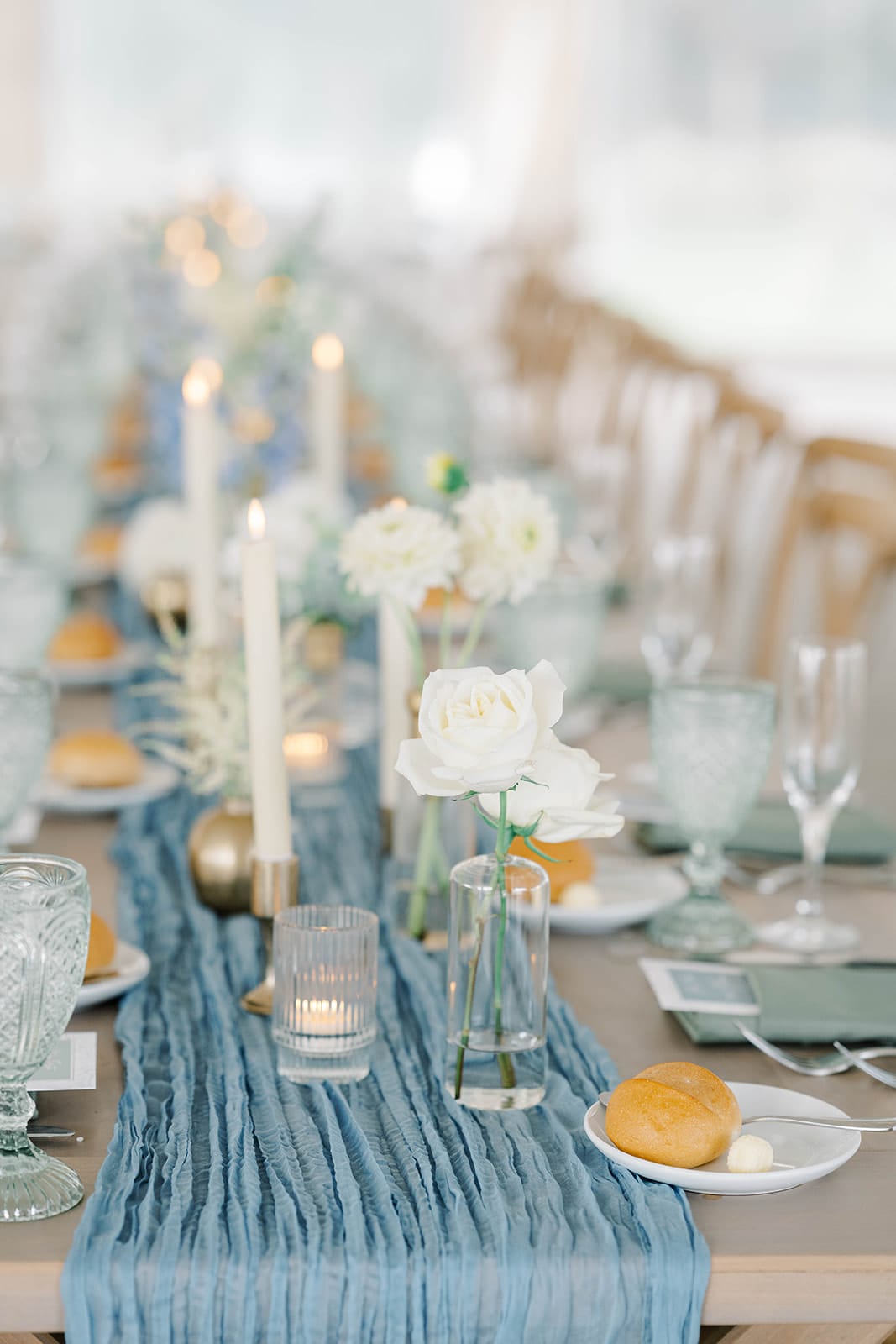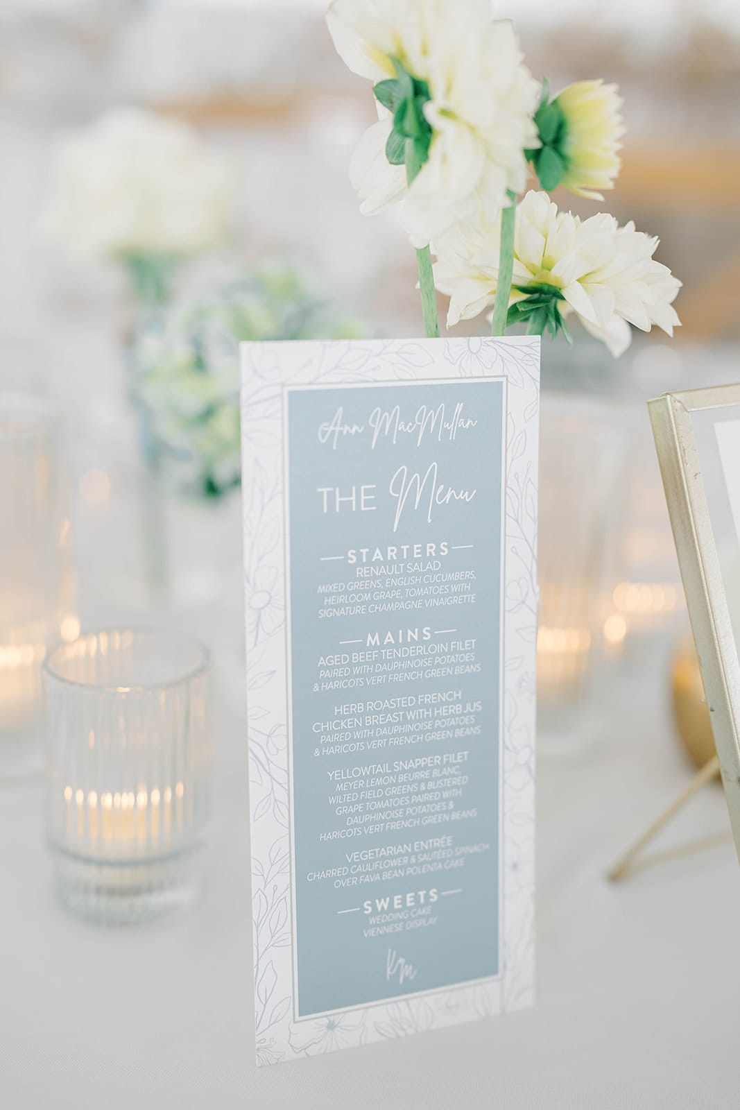“Our wedding day was a celebration of timeless love set against the picturesque backdrop of Renault Winery. Embracing a classic and romantic theme, we chose a palette of light blues, sage greens, and creams to harmonize with the venue’s natural beauty. The florals, echoing the chosen colors, embodied a classic and romantic aesthetic, adding a touch of grace to our unforgettable day.”