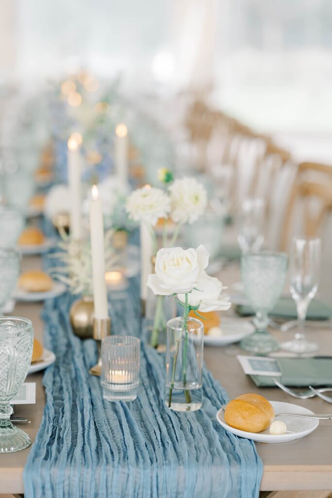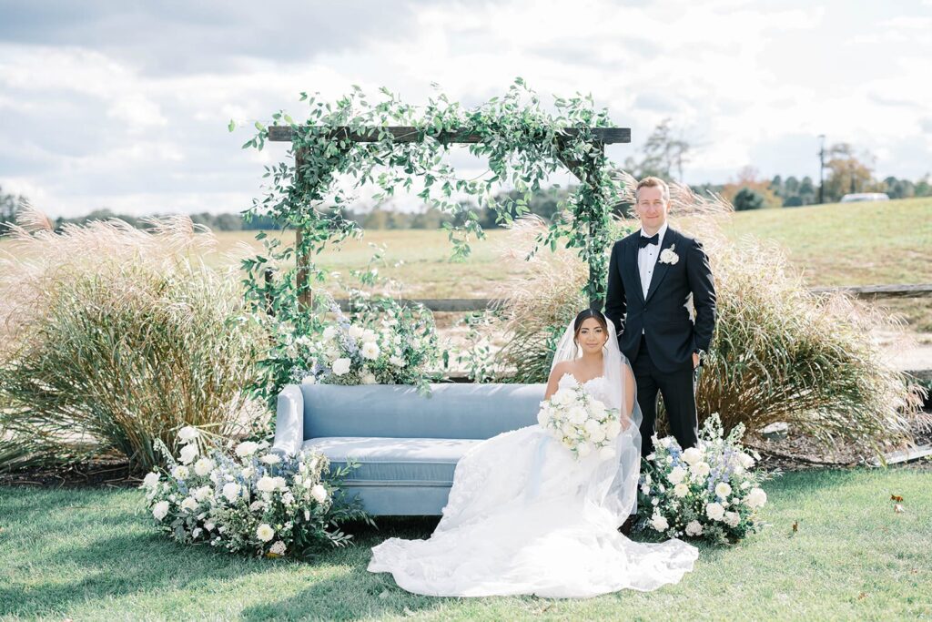 “One detail from our wedding that we absolutely couldn’t live without was actually a surprise from our florist (Vine & Oak). They staged a gorgeous dusty blue couch surrounded by beautiful floral arrangements for us to take our portraits at. It was an unexpected and enchanting addition that added a touch of elegance to the day, only making us more excited to walk down the aisle.”