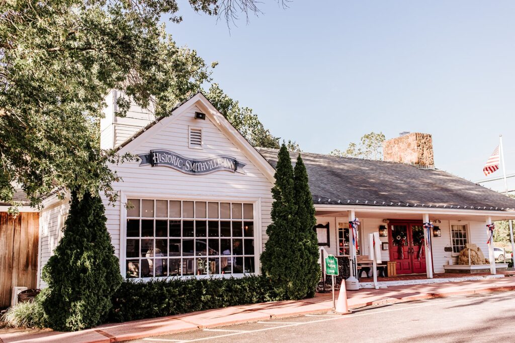 “We loved the open outdoor ceremony space and how the space effortlessly flowed from ceremony to cocktail hour then to reception. We loved the how quaint the town was, the wood detailing in the reception space, and the knowledge and guidance of the Smithville Inn staff. We also loved that we could stay with our families at their bed and breakfast that is within walking distance of the Smithville Inn.”
