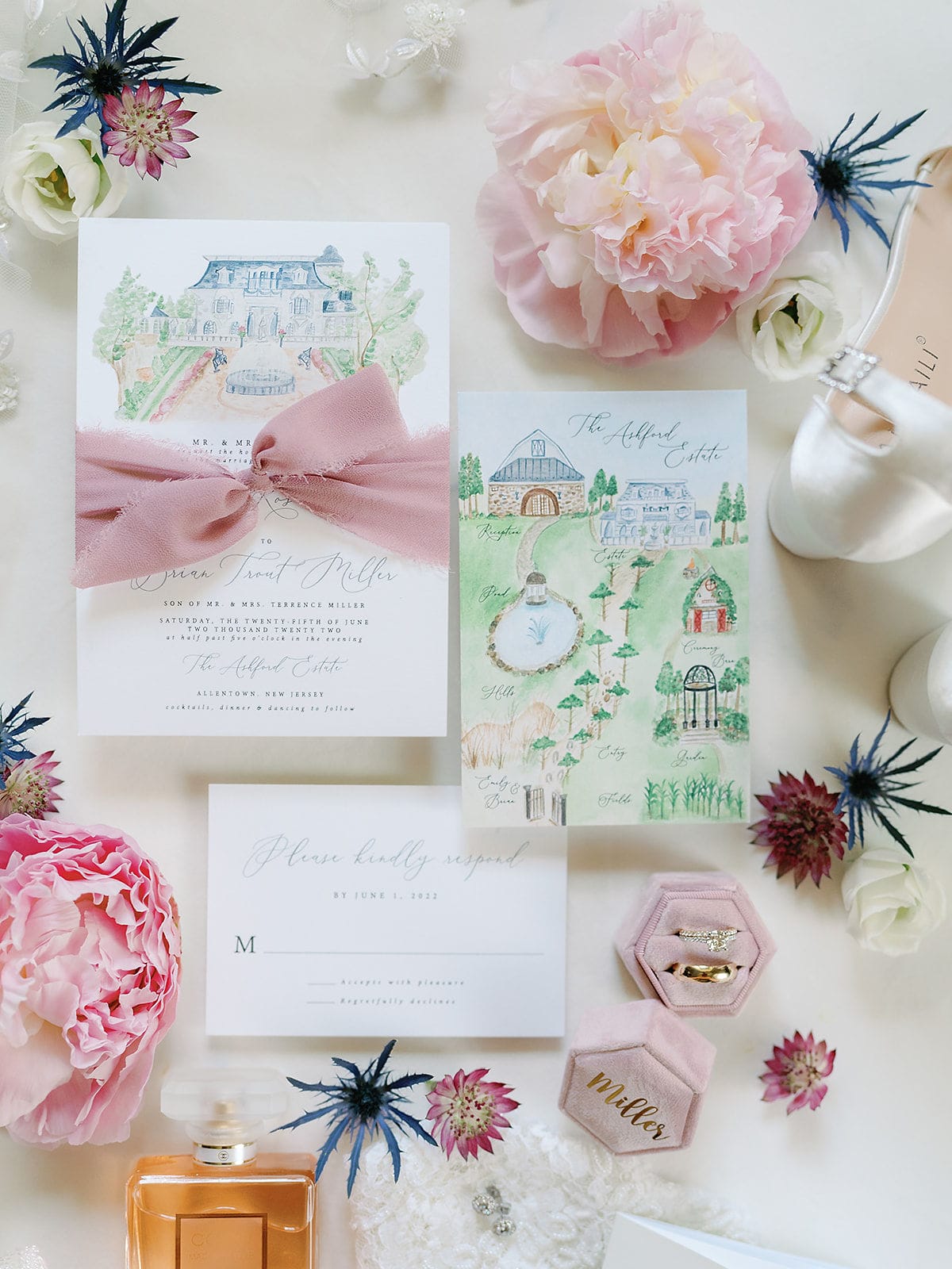 Emily and Brian tied the knot at the Ashford Estate in Allentown on June 25, 2022. They originally met in high school, and have been together ever since Brian gave Emily his varsity jacket during a beach bonfire the summer before their senior year.