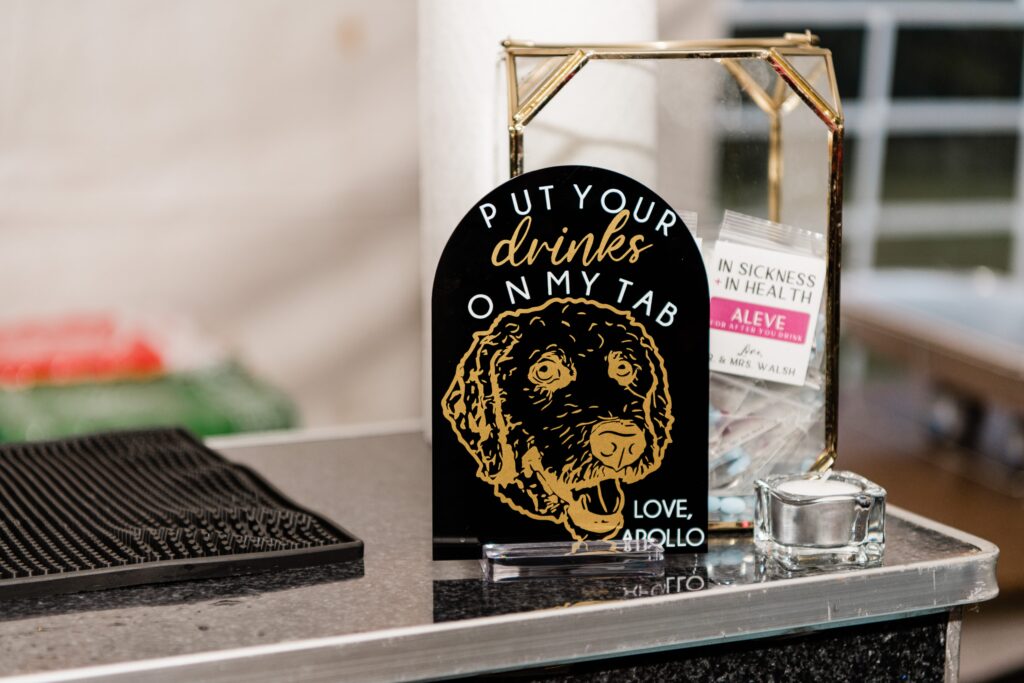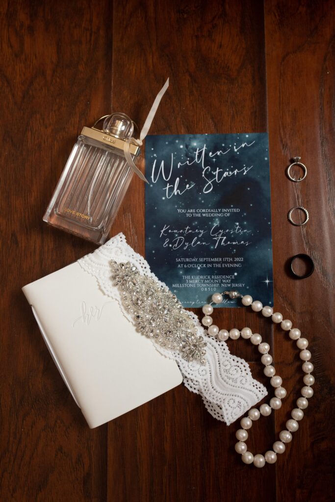 The couple both loves space and often says “I love you to the moon and back,” inspiring their theme. Their invitations were a deep emerald green with stars. A hot pink neon sign hung behind our sweetheart table that read “to the moon and back.” The bride hand-made all of the signs at the wedding.