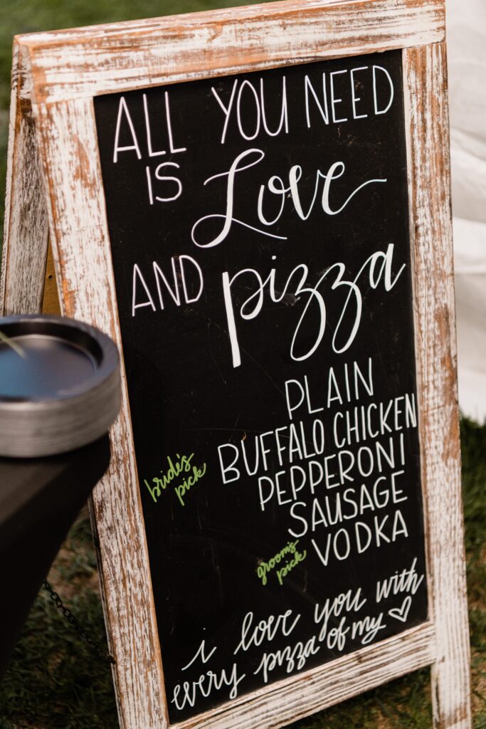 “I can’t say there was ever a wedding that we have gone to that we absolutely loved the food, which was also something that drew us away from a traditional wedding venue. We knew that food was extremely important to us,” says the bride.