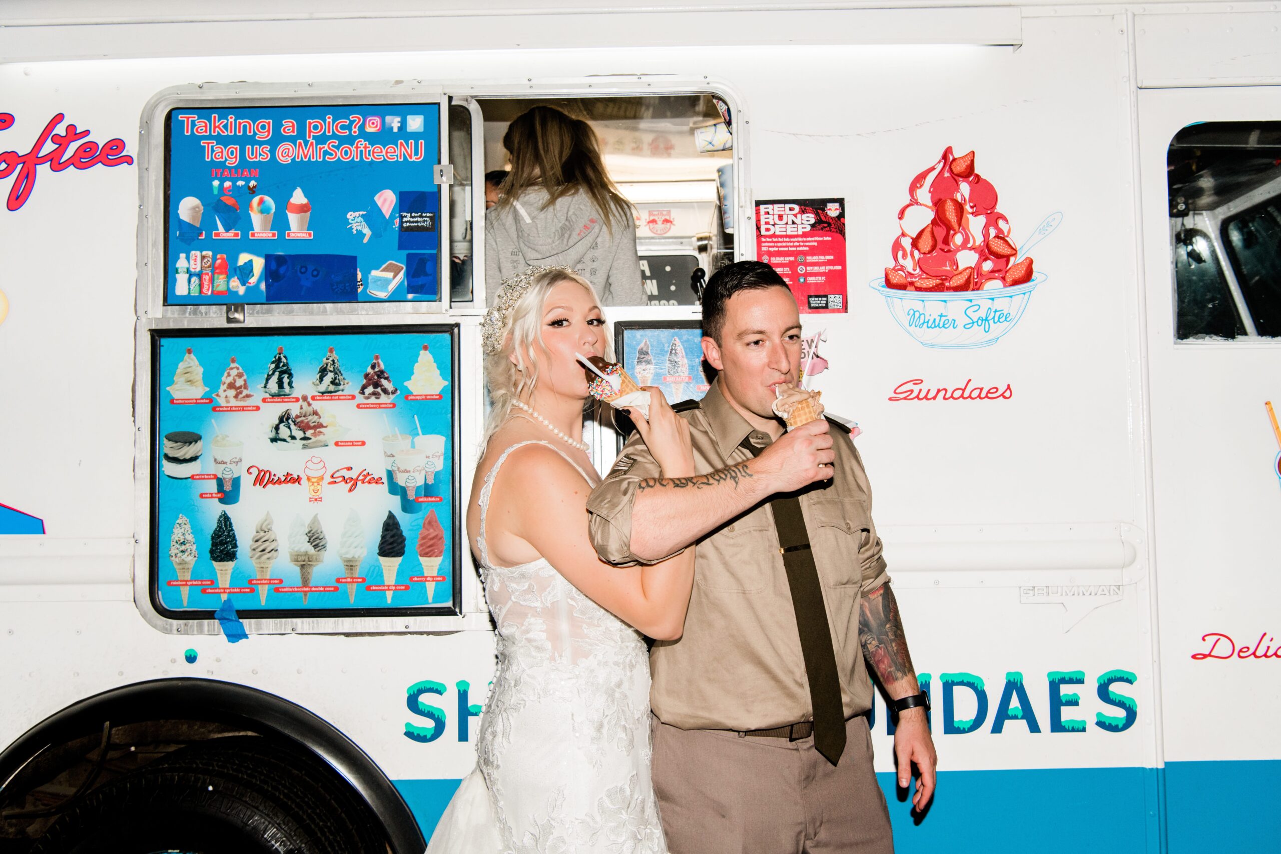 For dessert, the couple had cake and a Mister Softee truck. “It was so fun to see everyone getting a treat and reminiscing on their childhood of having the ice cream truck stop,” says Kourtney.