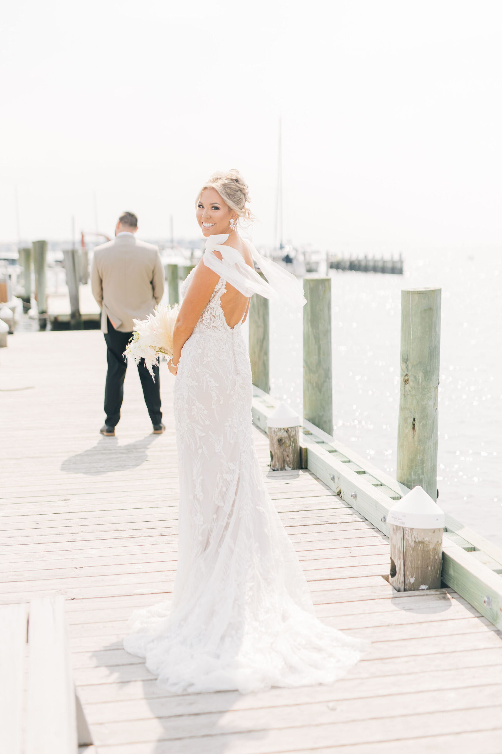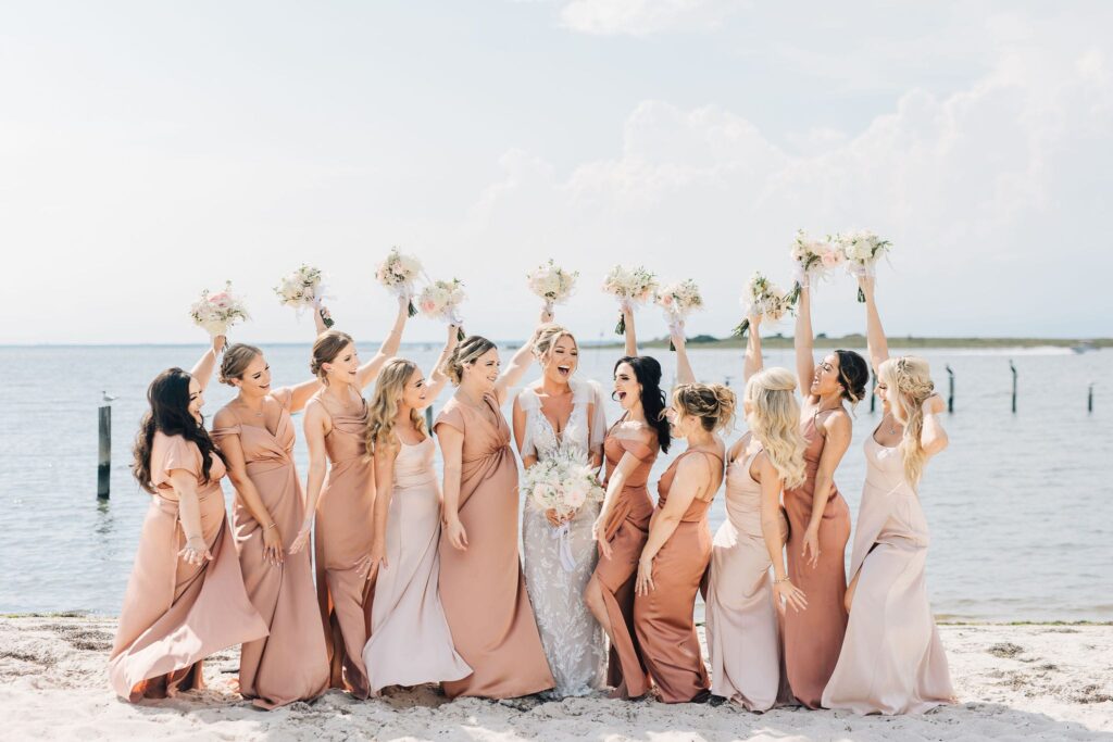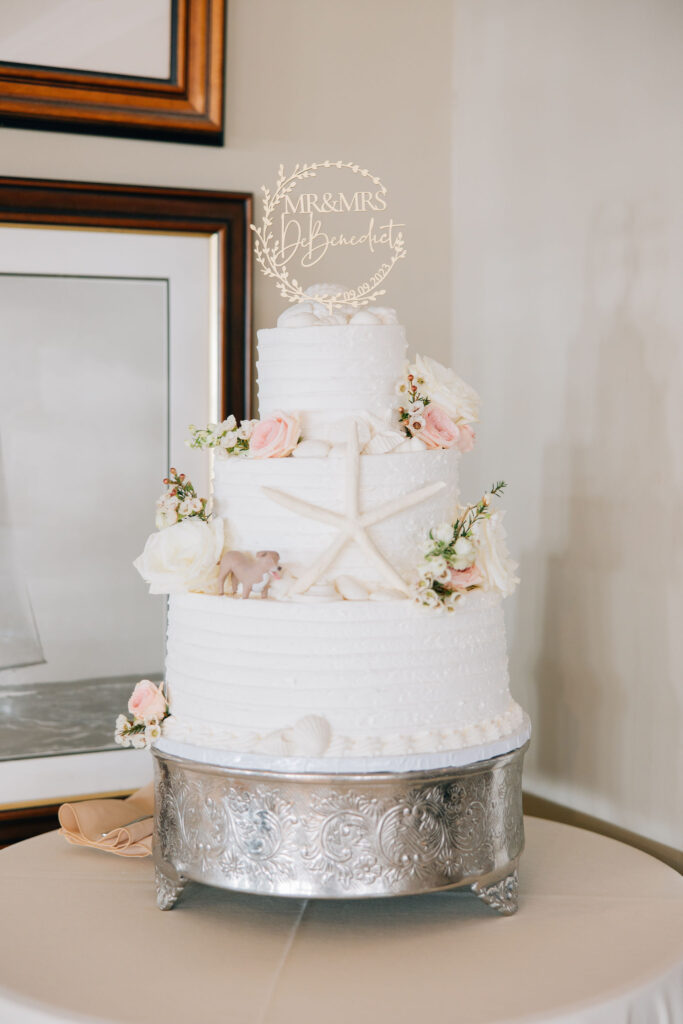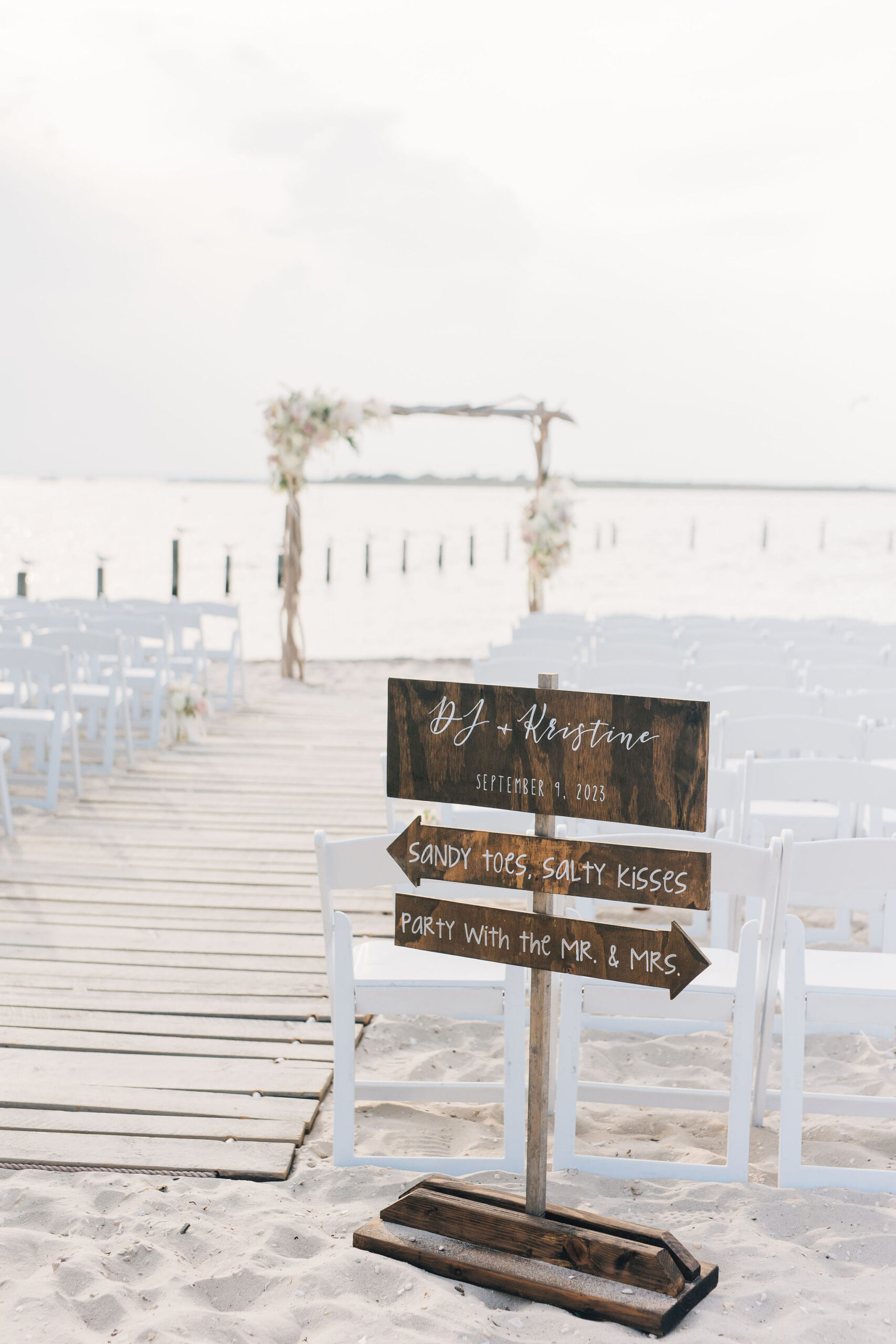“Having my bare feet in the sand, the bay within steps of us, and seagulls’ distant sounds in the background made everything feel so perfect and coastal. We said our own vows, too, which was extra special and important to me.”