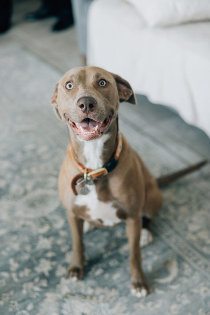 But Luna did end up spending time with DJ on their big day. The week before the wedding she came down with kennel cough and had to be rushed to the emergency veterinarian. “We were supposed to have her away at puppy camp all weekend for our wedding, but since she was just getting over being sick she was actually with my husband all morning and early afternoon the day of while he and the guys got ready at my mother-in-law’s house,” Kristine says.