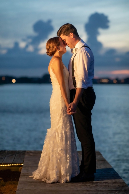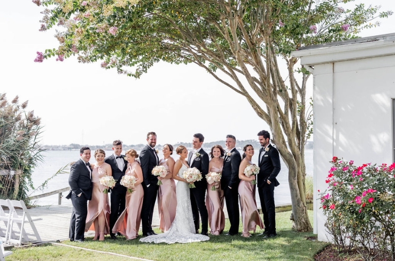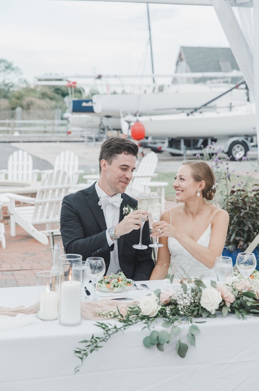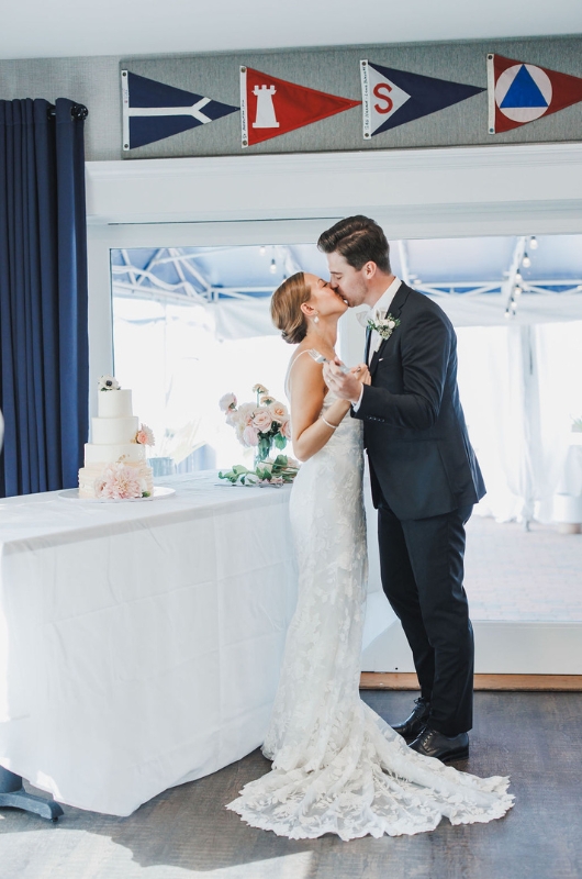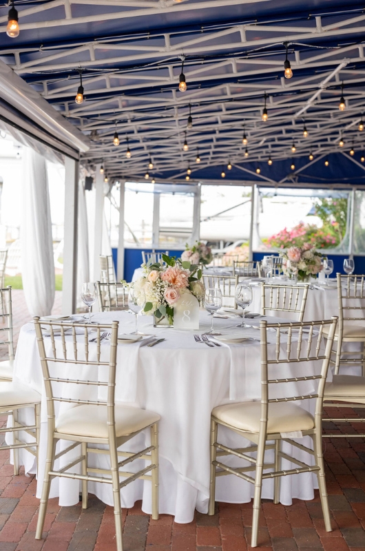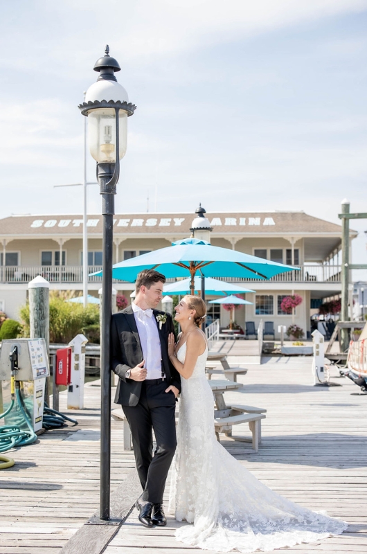 “We knew we wanted to be right in Cape May,” says Laura. “My family has been going to Cape May for over 20 years each summer, Ky had come the last five years, and we got engaged on Cape May Point! It is such a special place for us and we knew we wanted to create even more memories with friends and family there. The yacht club provided a unique opportunity to be right on the water without the hassle of a beach wedding with wind and sand. It was private, offered different spaces for each portion of the day, had beautiful views, and the white tent, with sparking lights, directly on the water could not be beat. We had a great experience with their general manager and chef as well—so it felt right from the first time we visited.”