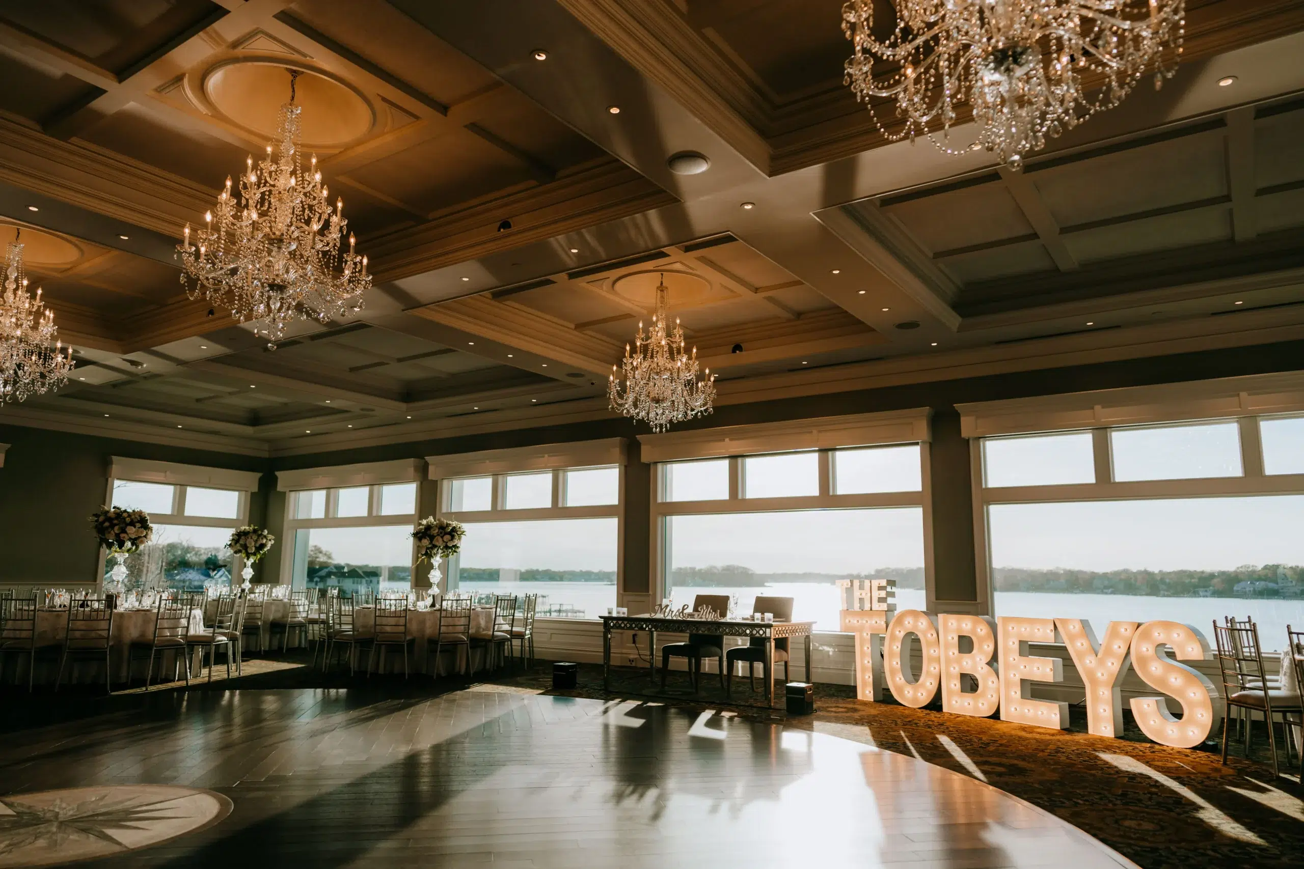 A light-up sign that read “The Tobeys” sat beside their sweetheart table and was a popular spot for photo ops.