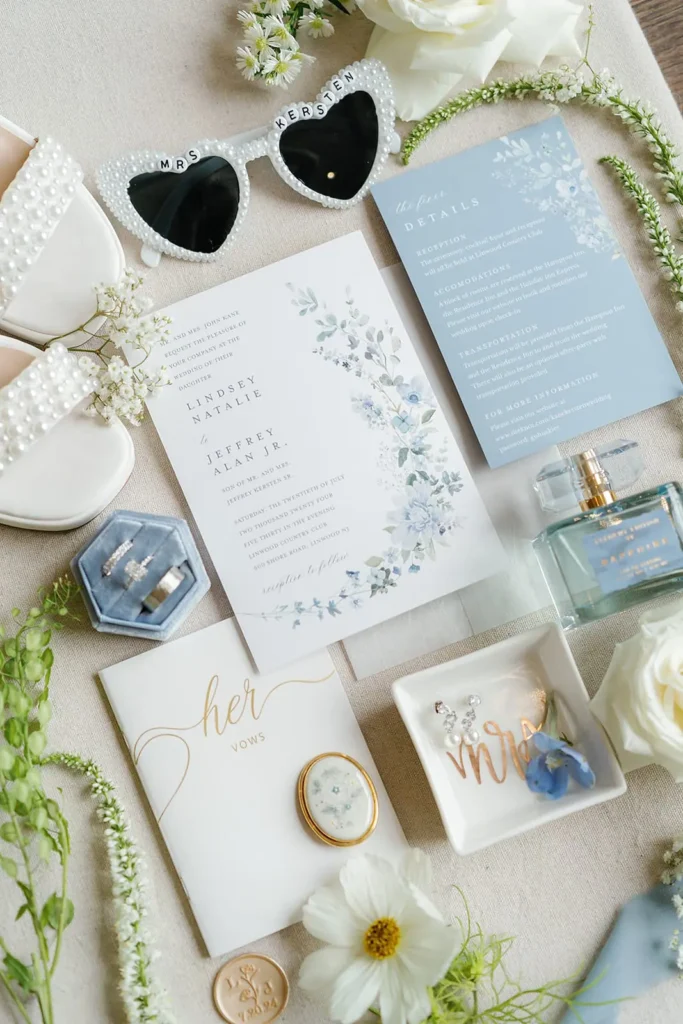 Fun details included a seed-themed seating chart where guests names were printed on seed packets, a bubble ceremony exit and beautiful white and blue flowers with a hint of lavender.