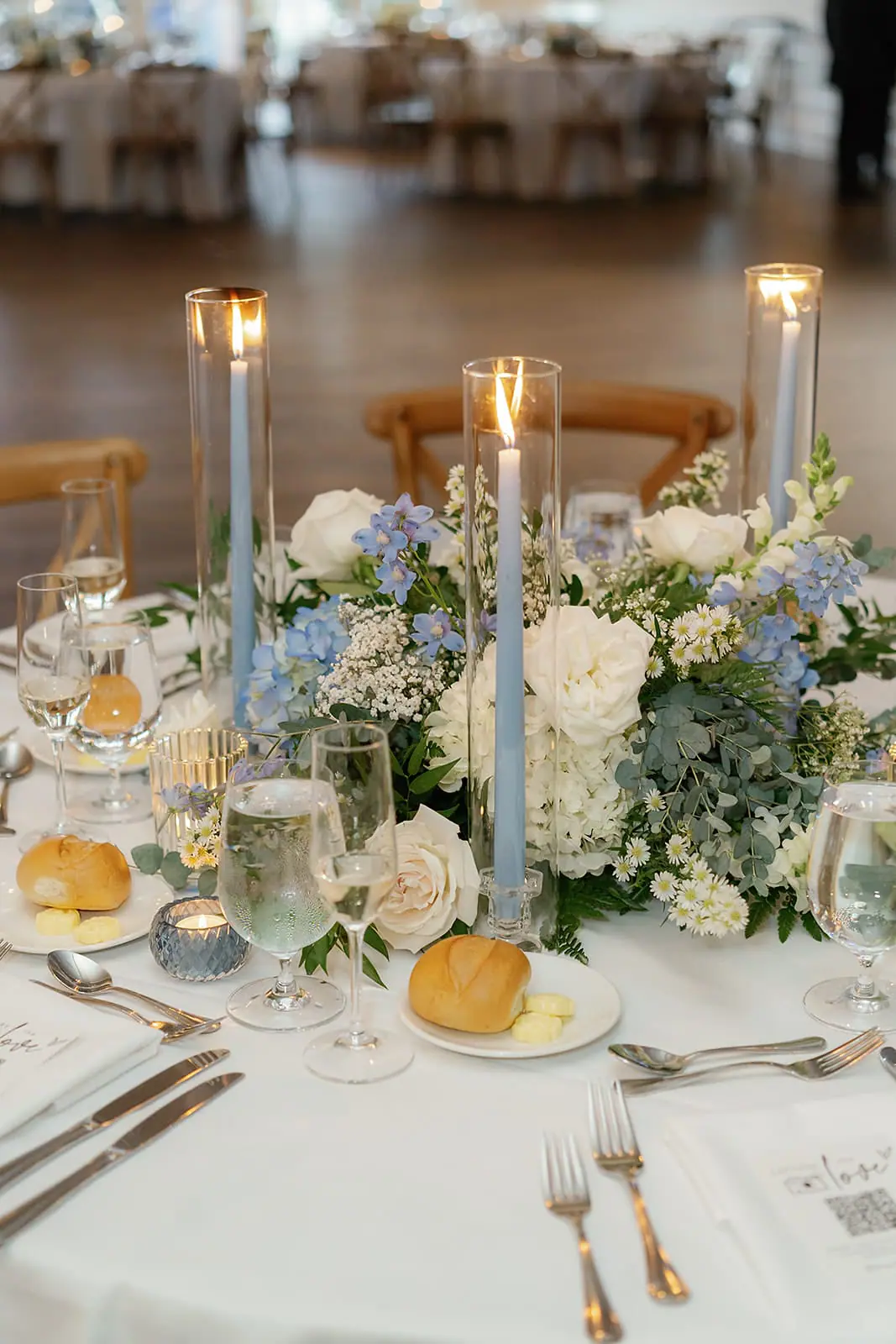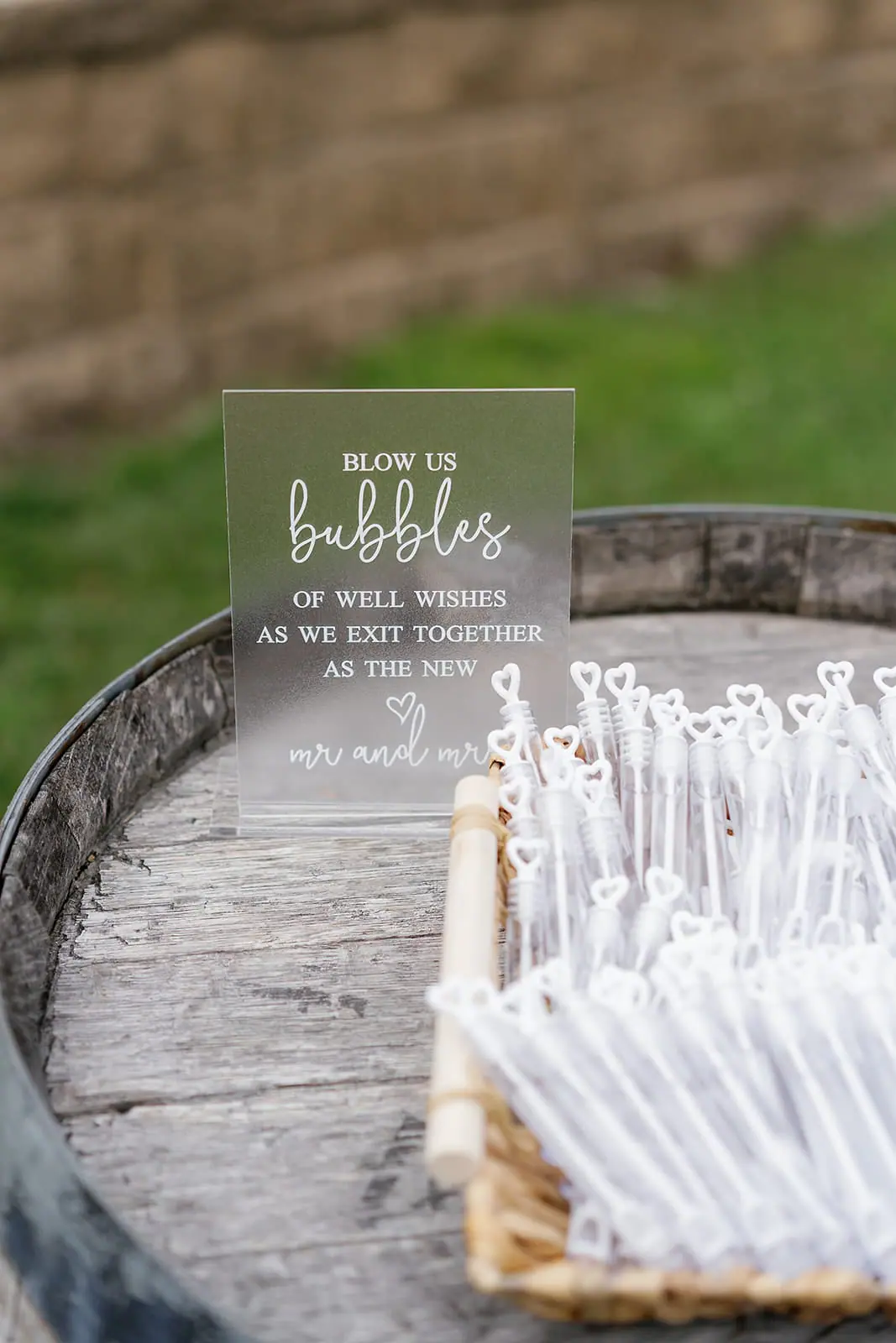 Fun details included a seed-themed seating chart where guests names were printed on seed packets, a bubble ceremony exit and beautiful white and blue flowers with a hint of lavender.