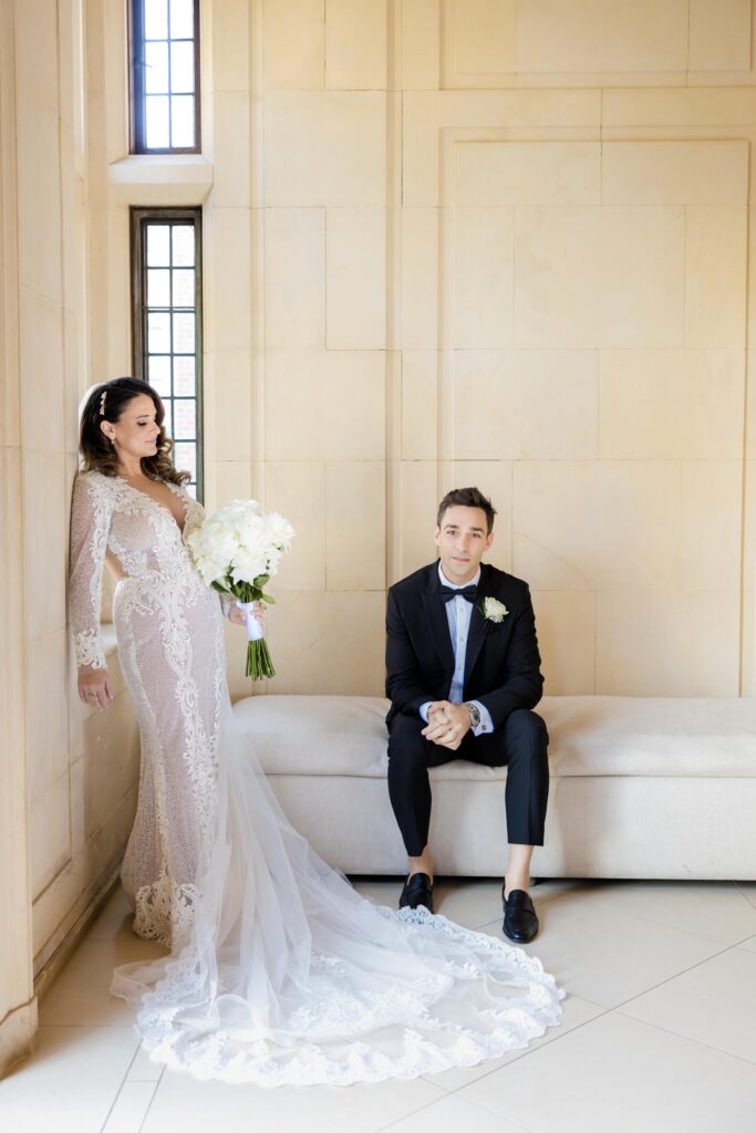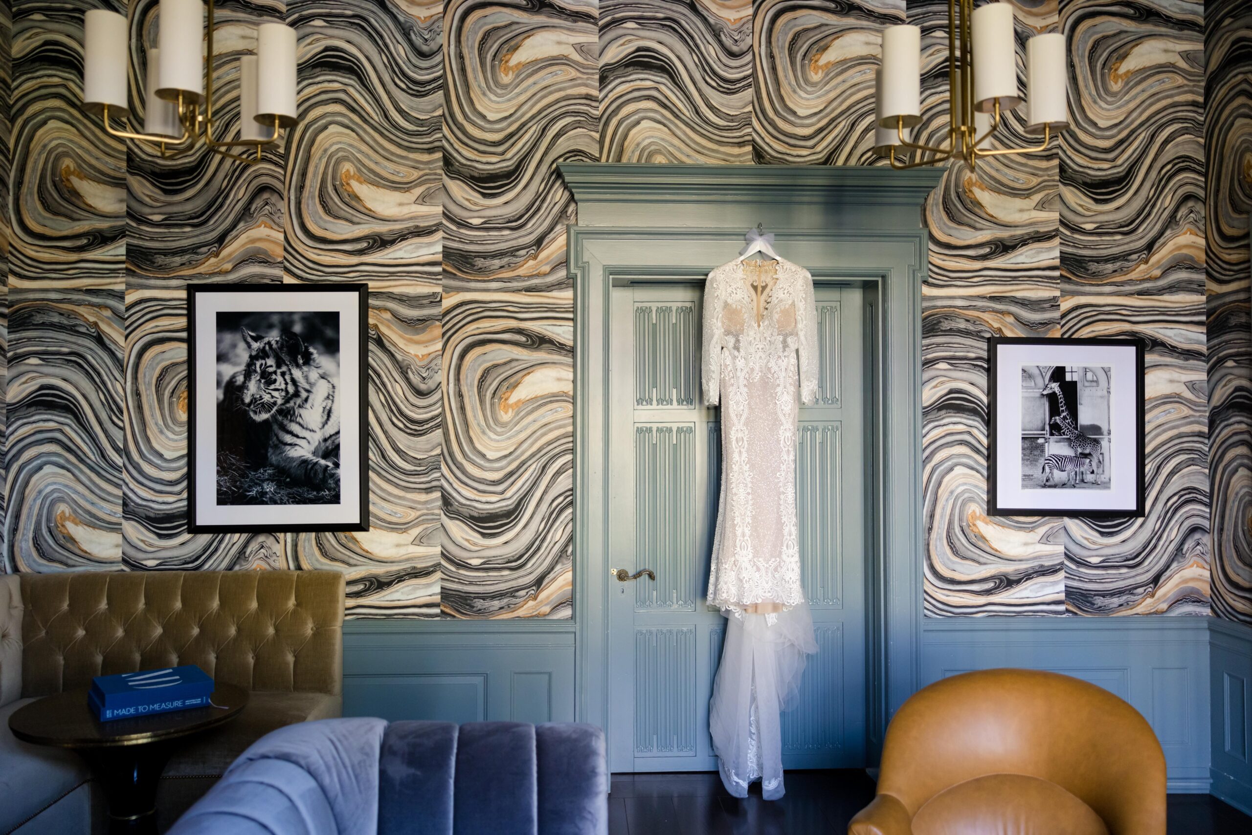 “I saw a dress I loved on Berta’s Instagram prior to getting engaged and saved it immediately,” she says. “Months later, my best friend was working a side job at a bridal shop that she loved (While House Bride). She sent me a picture of a dress that the shop just got in and said, ‘this would look so great on you!’ Coincidentally, it was the same EXACT Berta dress that I had saved months prior!”