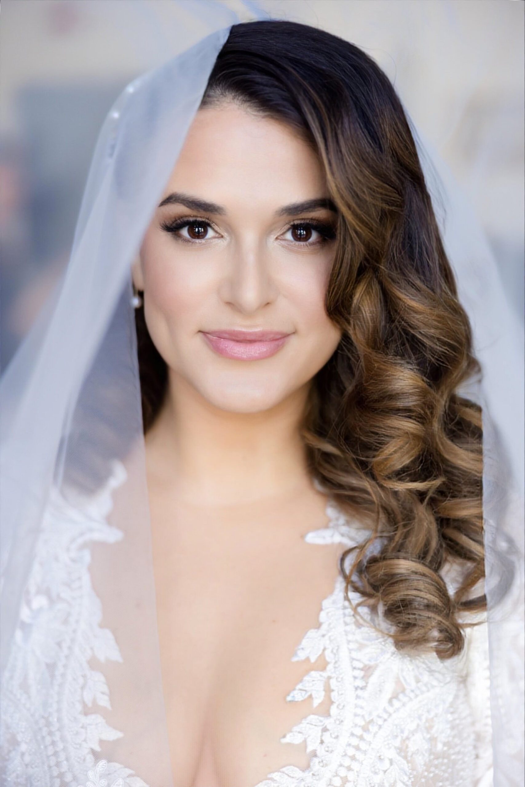 “The back of the dress is absolutely stunning with illusion fabric, white lace and pearl detailing,” she says. “As soon as I tried it on and it paired with a cathedral veil, I knew it was the one!”