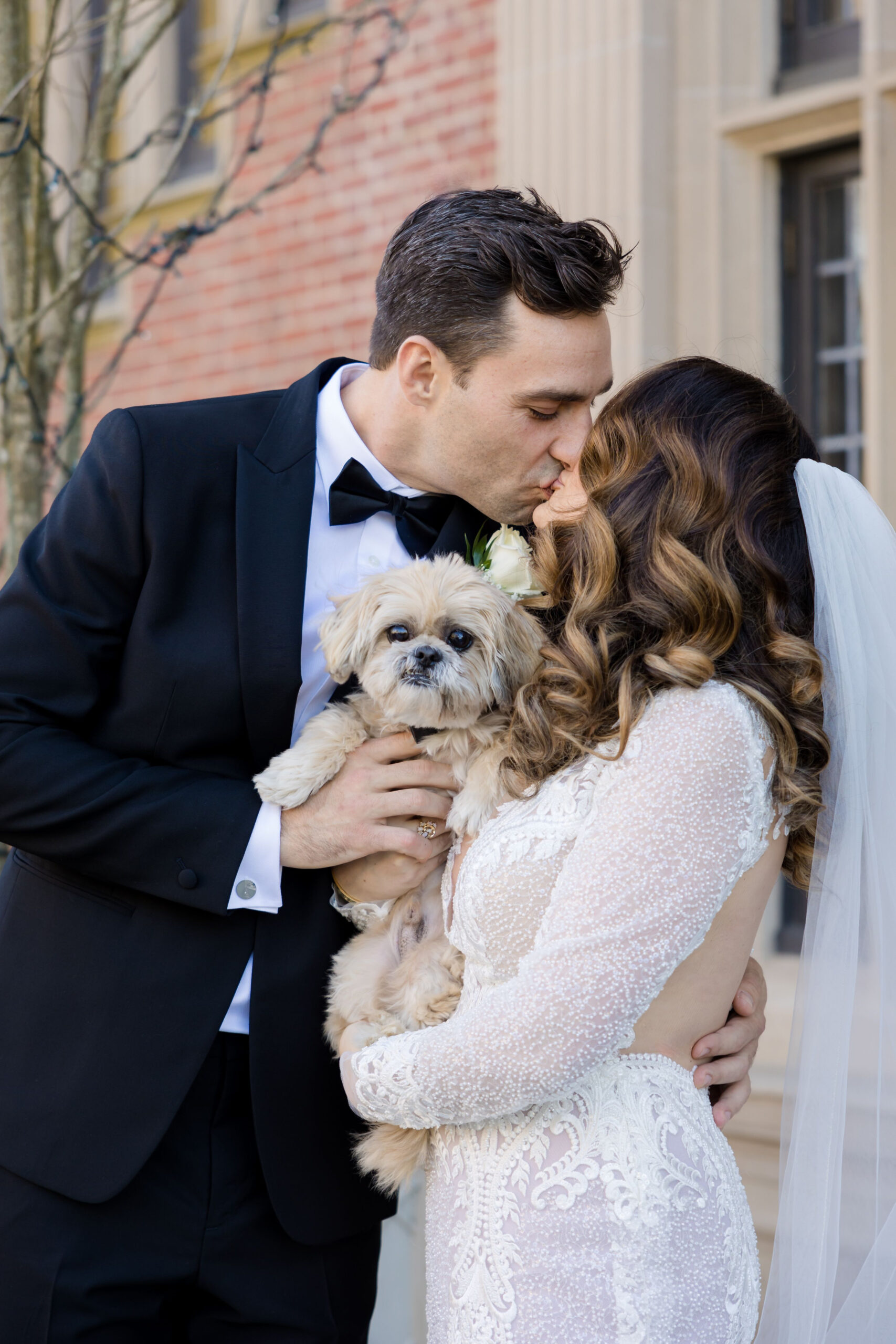 Lindsey went with neutral and classic colors for the wedding and incorporated, “personal touches that represented who we are as individuals and as a couple (i.e. including family heirlooms and photos, signature drinks—even one for our dog!)”