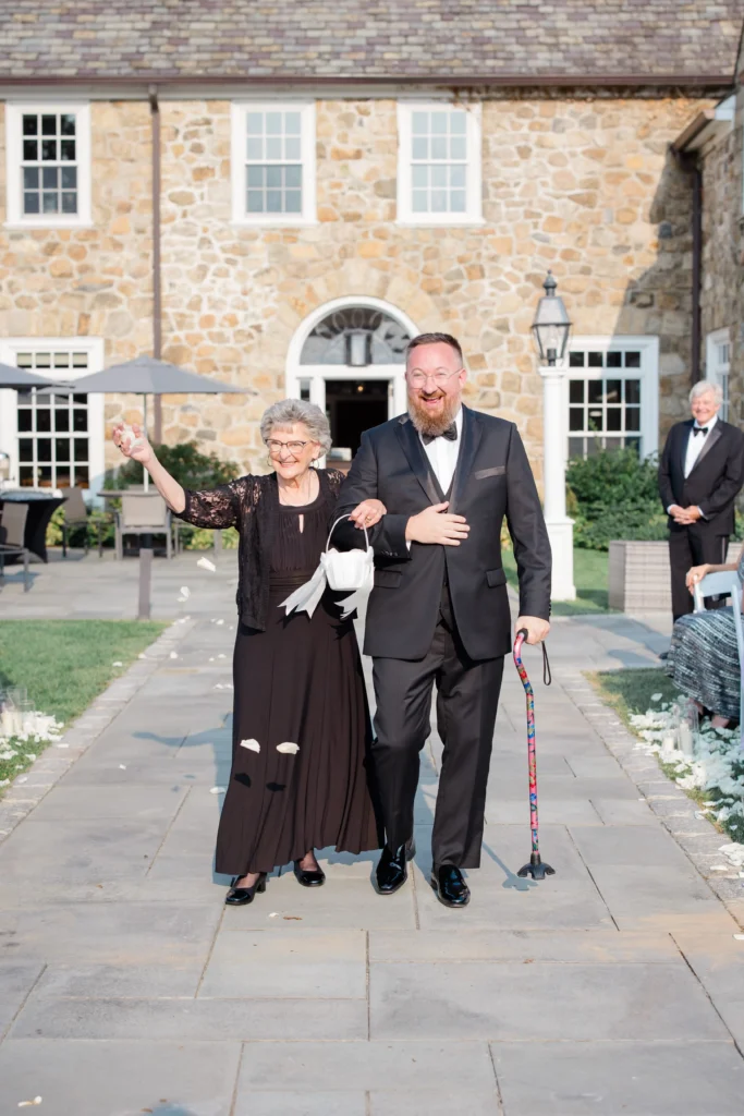 Meg’s 94-year-old grandmother was there to zip the bride into her first dress—and be a flower girl!