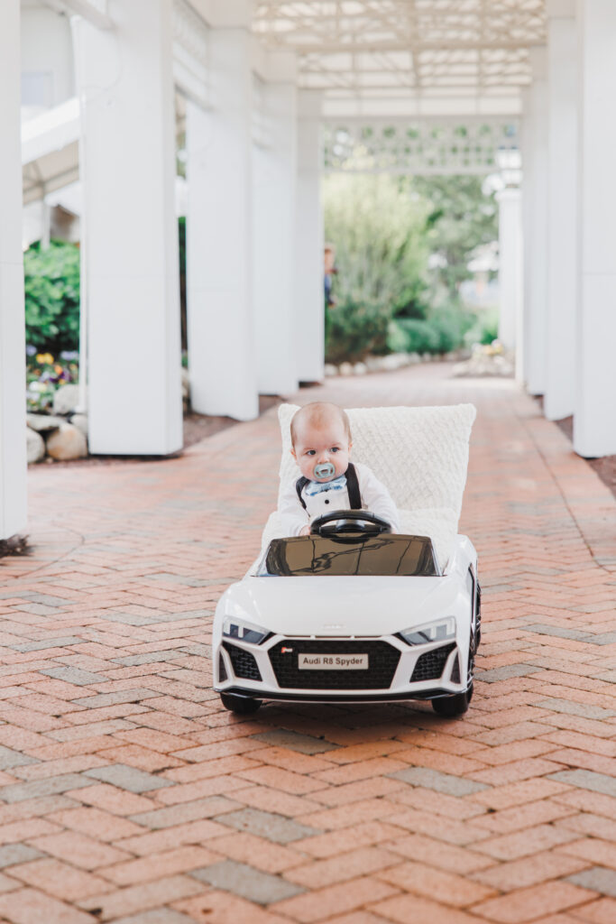 “Our son Luke going down the aisle in an miniature remote-controlled Audi car,” says Mia. “I can’t even describe how amazing it was to share this special day with our 7-month-old son.”