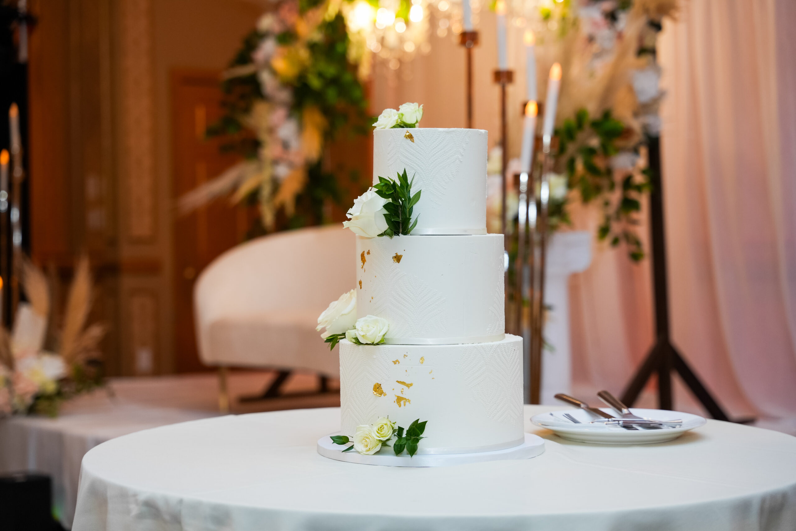 For cake flavors, they went with a white strawberry chiffon and a chocolate and chocolate mouse.