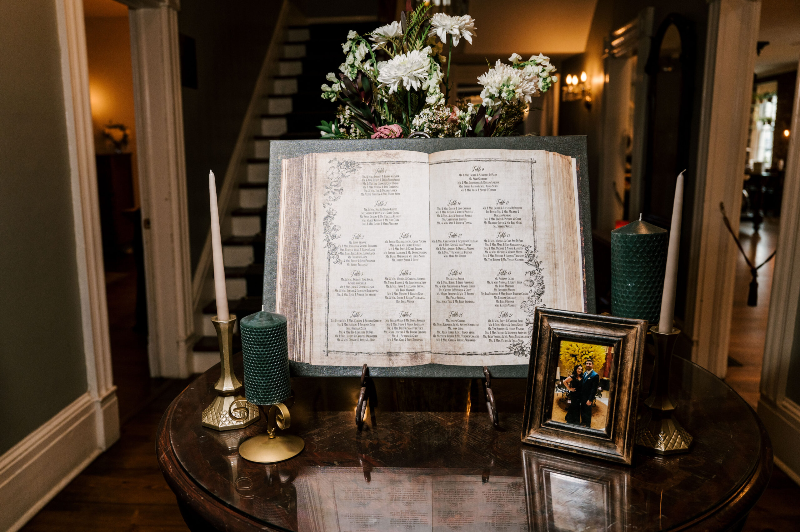 Their seating chart was a canvas-printed open book that matched the table numbers.