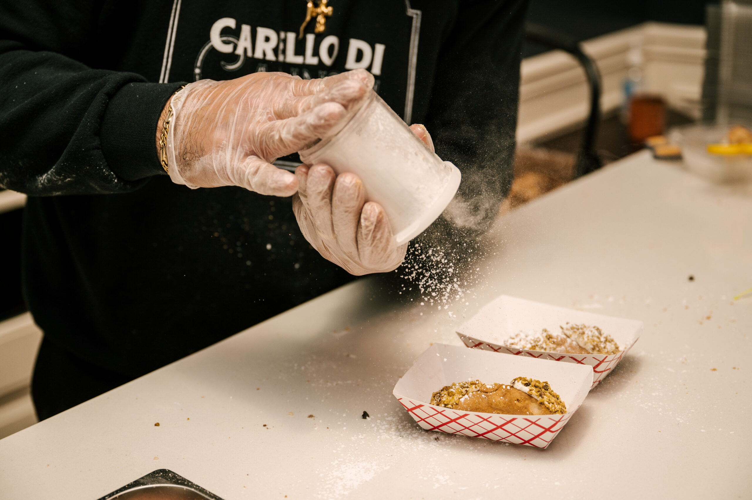 For dessert, the pair had a New Jersey boardwalk station plus a cannoli cart with custom fillings from Carrello Di Cannoli (aka the Cannoli Guy). Their to-go station featured an assortment of PB&J sandwiches on bread, muffins, waffles and pound cake.