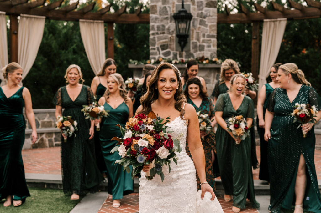Nicole’s maid of honor and bridesmaids all wore dark green, “which was representation of Saint Patrick’s Day from when we met and got engaged.”