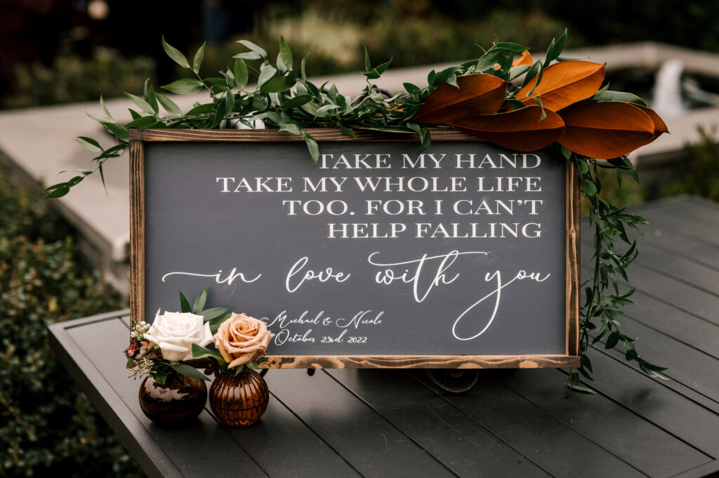 “We also hid miniature dog figurines that were a replica of our dog Quinn around the venue along with a sign letting our guests know since our dog couldn’t be in attendance to have fun looking for her,” says Nicole.