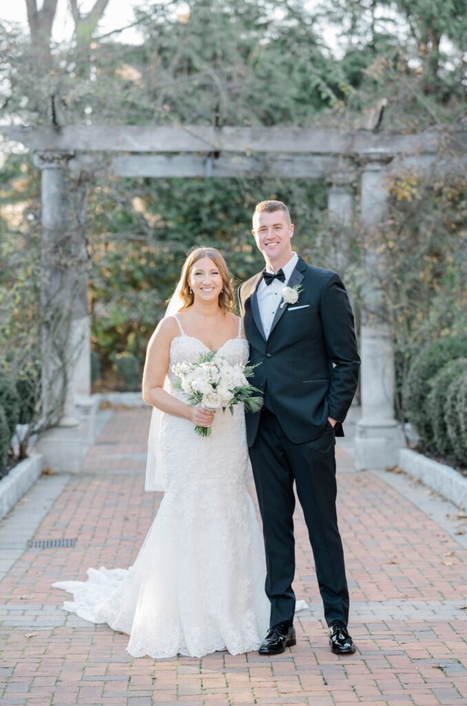 “I loved the grand feeling without a large overwhelming venue,” says Nikki. “Ciro, one of the Florentine owners, made me feel like family immediately. He catered to us and listened to my visions before I even officially choose the venue. The floor-to-ceiling windows in the ballroom were the cherry on top of it all. Stunning views of the twinkle lights in the garden made our romantic vibes only that much stronger. Not to mention their incredible cocktail hour and bridal suite. Because it was a Friday wedding, we had access to the bridal suite all day, which was a huge factor in choosing the venue. We were so relaxed because we did not have to worry about getting anywhere. We had our ceremony at the venue as well, which made it a true one-stop-shop type place—the kind of convenience I was looking for to have the most stress free, enjoyable day. The staff runs the entire day like a well-oiled machine. I got that vibe before committing to the venue but now I can say with experience that they all know what they are doing and made our day entirely seamless.”