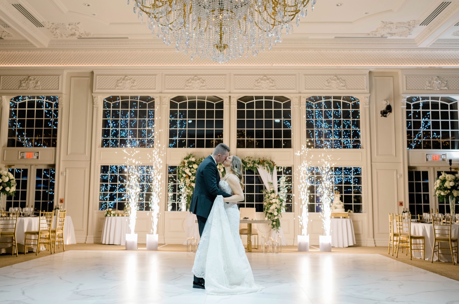 “I loved the grand feeling without a large overwhelming venue,” says Nikki. “Ciro, one of the Florentine owners, made me feel like family immediately. He catered to us and listened to my visions before I even officially choose the venue. The floor-to-ceiling windows in the ballroom were the cherry on top of it all. Stunning views of the twinkle lights in the garden made our romantic vibes only that much stronger. Not to mention their incredible cocktail hour and bridal suite. Because it was a Friday wedding, we had access to the bridal suite all day, which was a huge factor in choosing the venue. We were so relaxed because we did not have to worry about getting anywhere. We had our ceremony at the venue as well, which made it a true one-stop-shop type place—the kind of convenience I was looking for to have the most stress free, enjoyable day. The staff runs the entire day like a well-oiled machine. I got that vibe before committing to the venue but now I can say with experience that they all know what they are doing and made our day entirely seamless.”