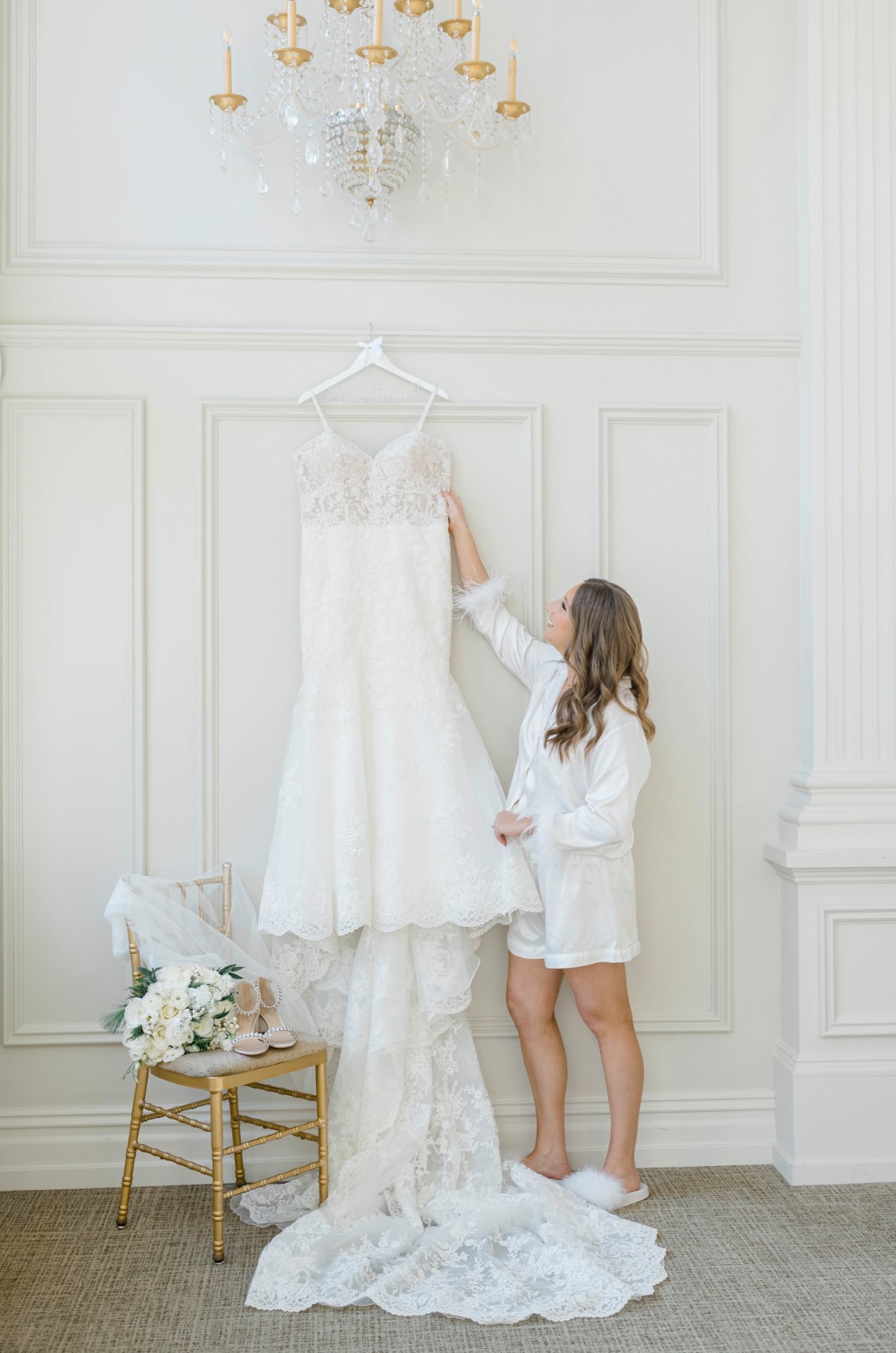 “As some say it goes, my gown was one I would not have chosen entirely on my own,” says Nikki. “I owe that to the expertise of the Aleanna’s Bridal in Paramus. They listened to what I liked and did not like about the gowns I was trying on and then brought me “the one” It is a Demetrios fit and flare gown with beading and lace work and a gorgeous train. They altered it in-house and added my bustle. I paired it with a simple short italian tulle veil. It was perfect!”