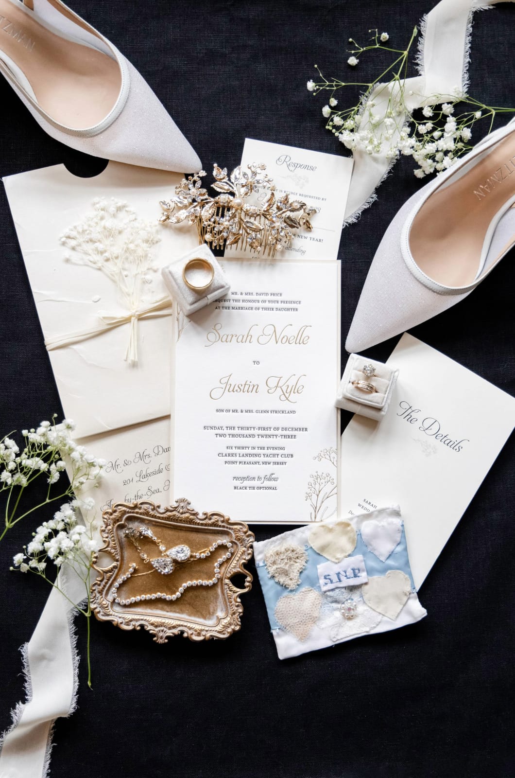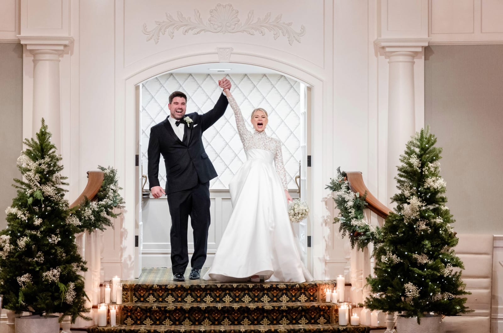 Sarah and Justin tied the knot in an elegant New Year’s Eve wedding on December 31, 2023 at Clarks Landing Yacht Club.