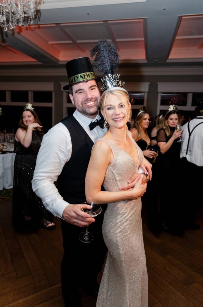 The couple and their 140 guests danced the night away in the ballroom until just before midnight, when everyone counted down to 2024 as they watched the ball drop and celebrated with hats and noisemakers.