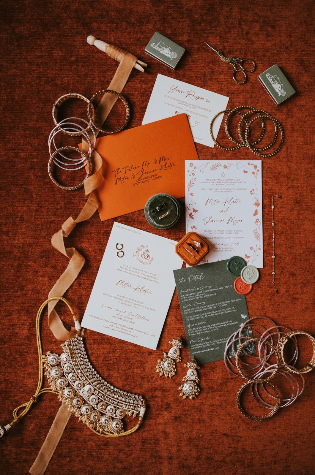 BRIDE’S VEIL: All About Romance Bridal // BRIDE’S SHOES: (Indian) Badgley Mischka; (American) She Is Cheval // BRIDE’S RINGS Brilliant Earth (engagement ring), Marrow Fine (band)