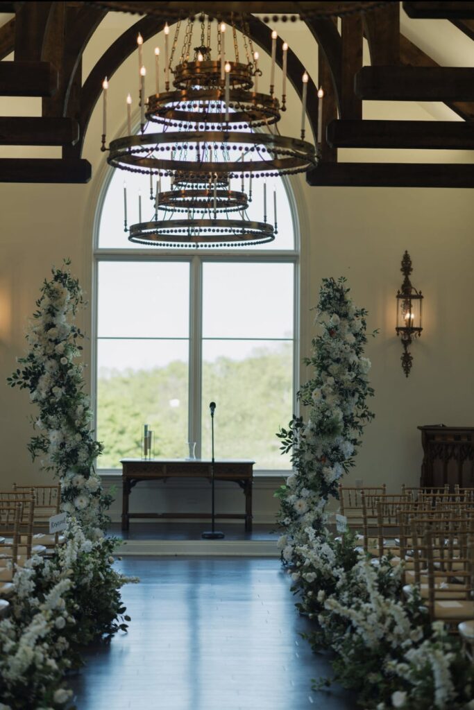 The couple loved the Park Savoy’s chapel with its rustic-modern feel and the architecture.