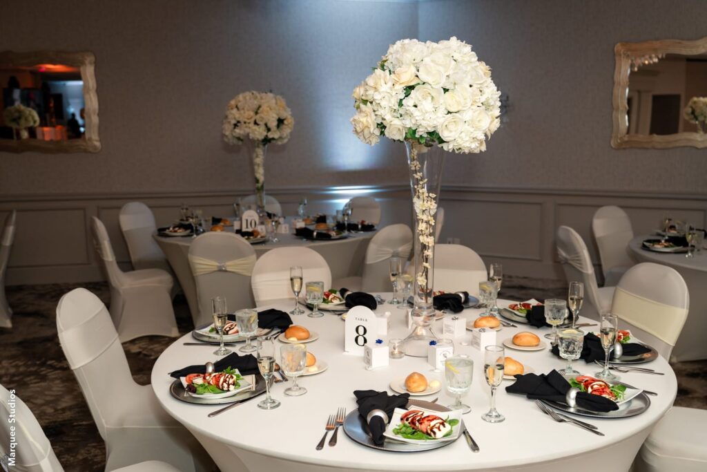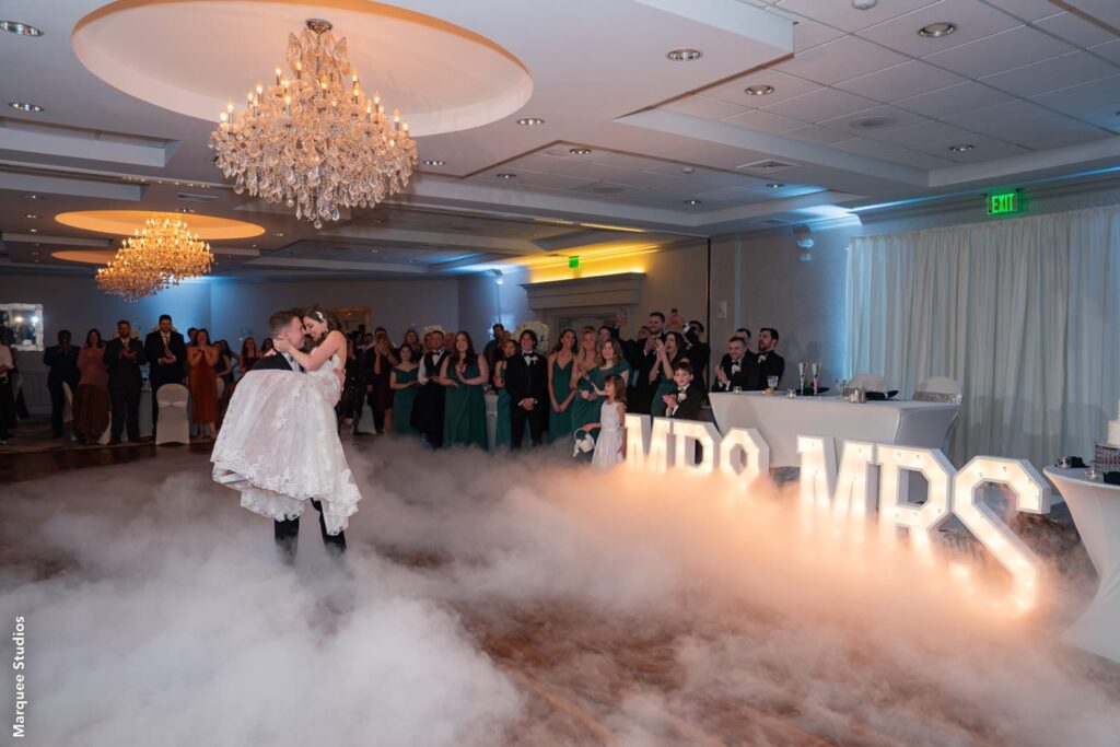 “Other than the reception area exceeding our expectations in regards to capacity and visual aesthetics,” says Stephanie, “the Windsor Ballroom is connected to a hotel which was extremely convenient for our guests, especially those who had to fly from other areas of the country. Our guests could stay and celebrate with us for the entire weekend without having to get into their car once! Additionally, the staff we worked with were absolutely superb and very professional, while staying friendly throughout the entire process! The venue was beautiful and the ballroom and hotel rooms were newly renovated, which even further made our guests feel very comfortable.”
