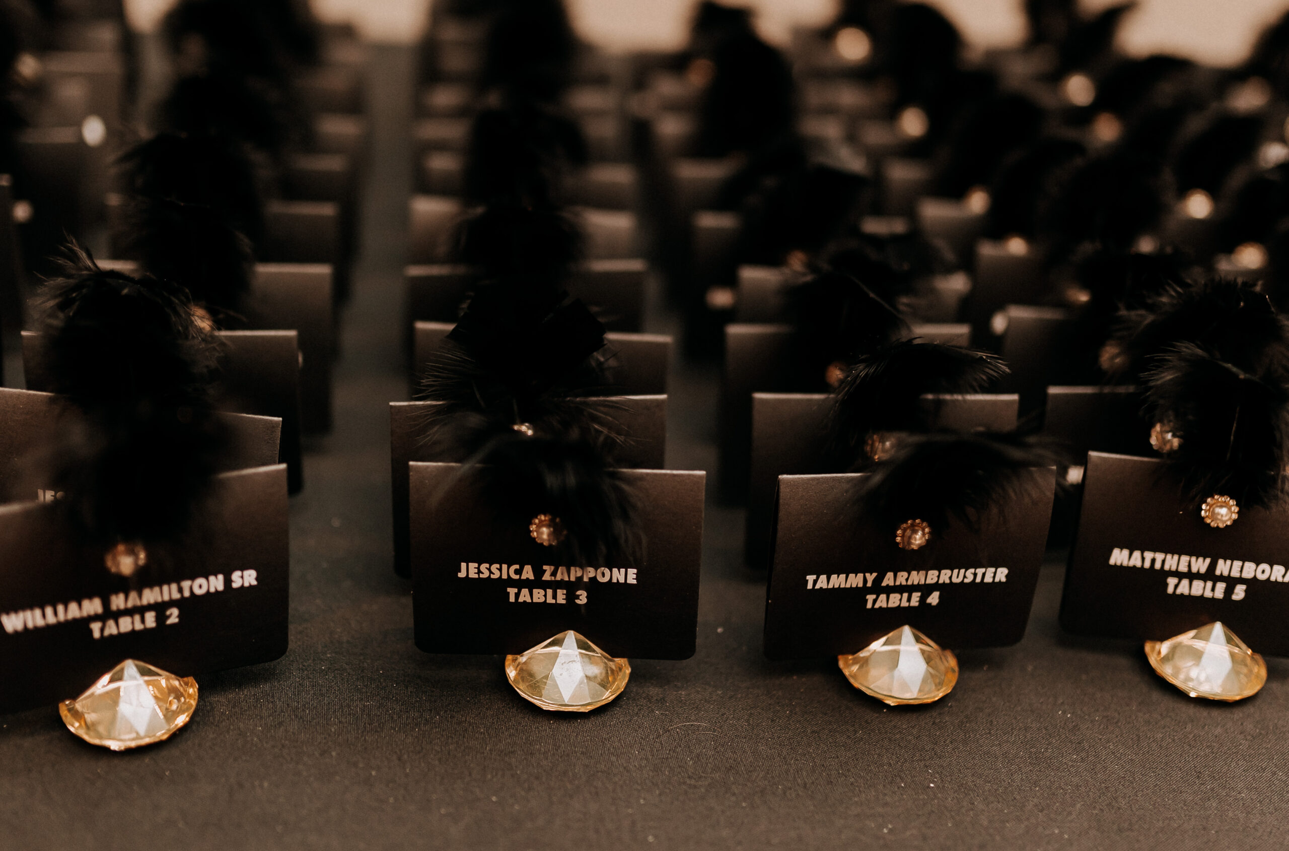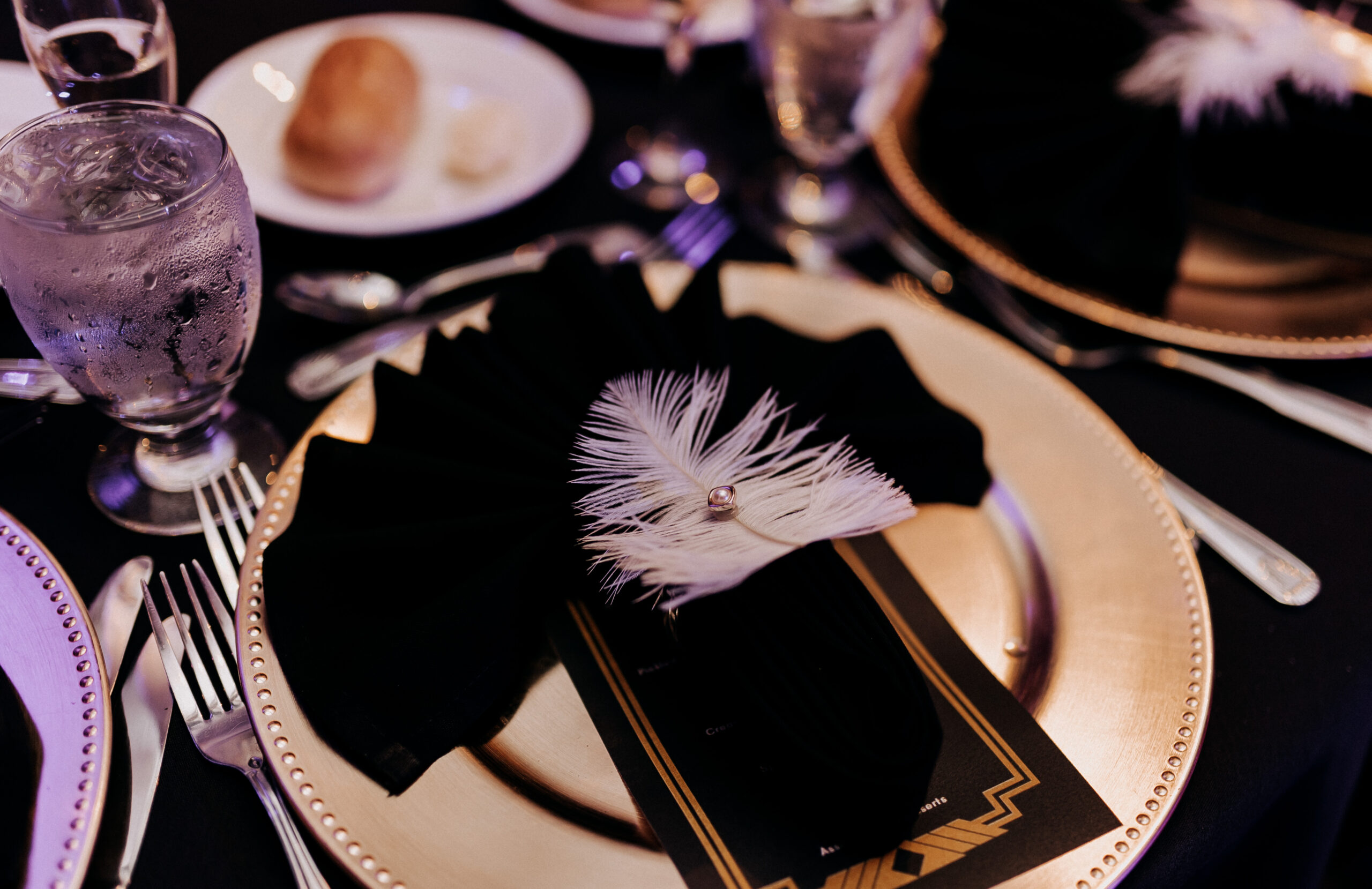 “We pictured gold tones, feathers, fringe, flapper dresses, pearls, champagne towers, jazz music and plenty of dancing,” says Taylor.