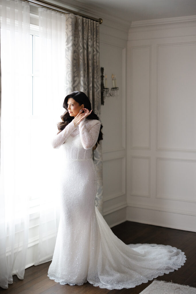 “We made sure to incorporate details reminiscent of our grandparents, like a vintage inspired cake and cake topper, family photos, my grandmother’s wedding band that is now mine, and my long sleeved and high neck dress.”