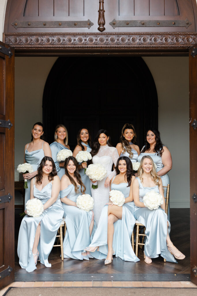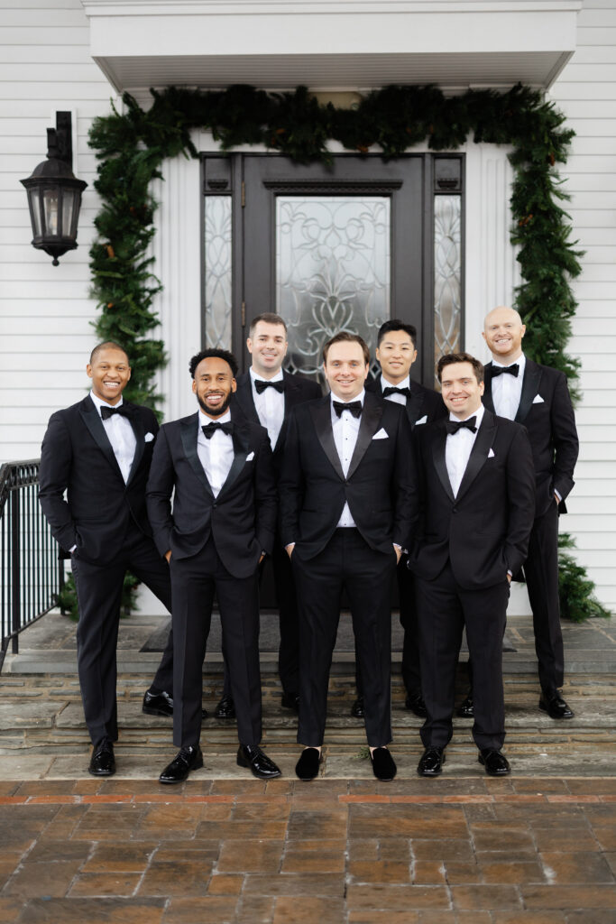 The bridal party was in Dessy Bridal dresses and the groomsmen were in tuxes from The Black Tux.