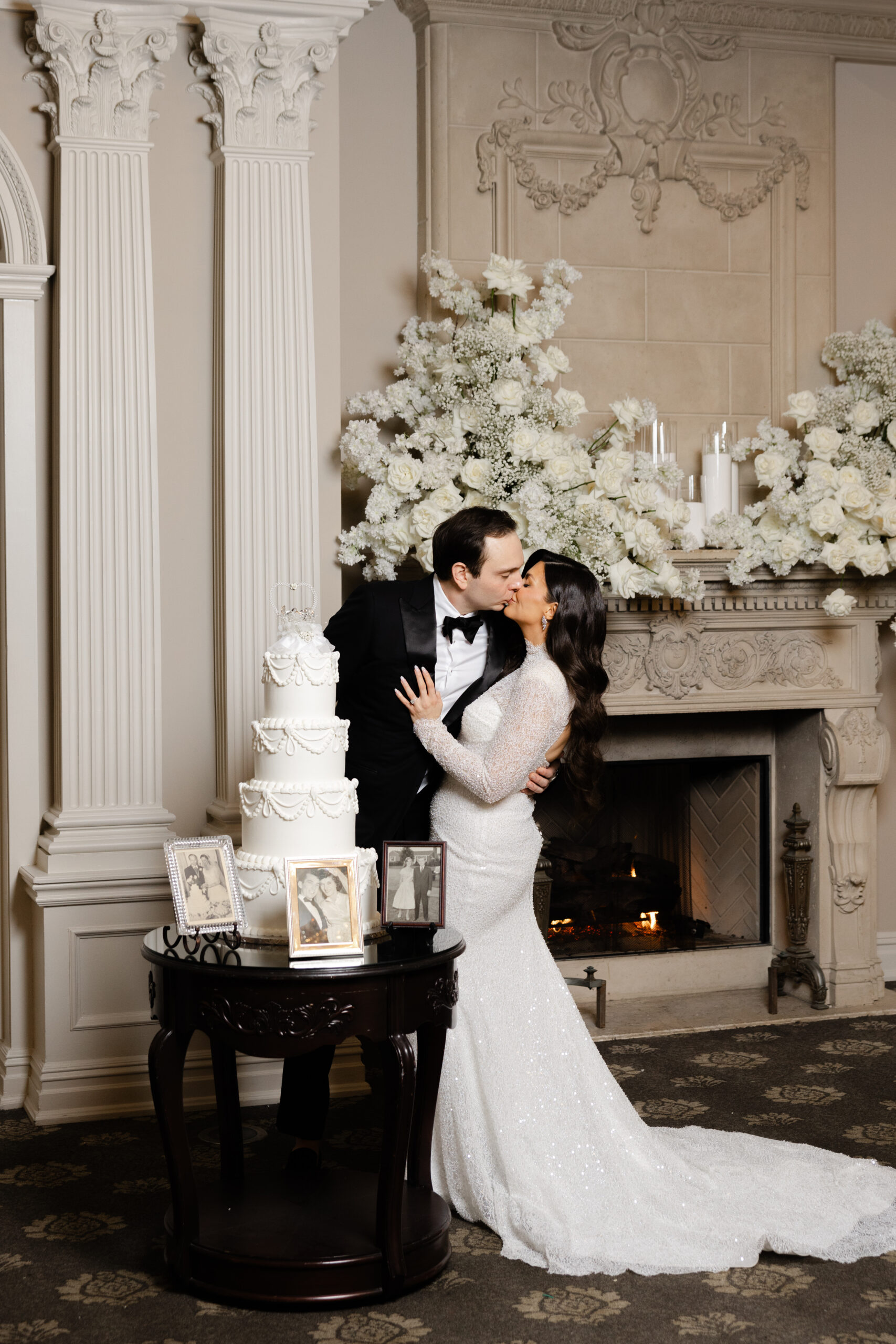 “We made sure to incorporate details reminiscent of our grandparents, like a vintage inspired cake and cake topper, family photos, my grandmother’s wedding band that is now mine, and my long sleeved and high neck dress.”
